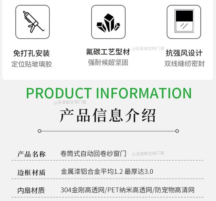 | 顔色 | PET納米級高透網+防蚊蟲防灰塵 |