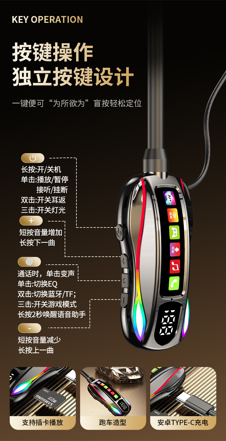 【大訂】無線掛脖式藍牙耳機超長待機可插內存卡k歌耳返高清通話