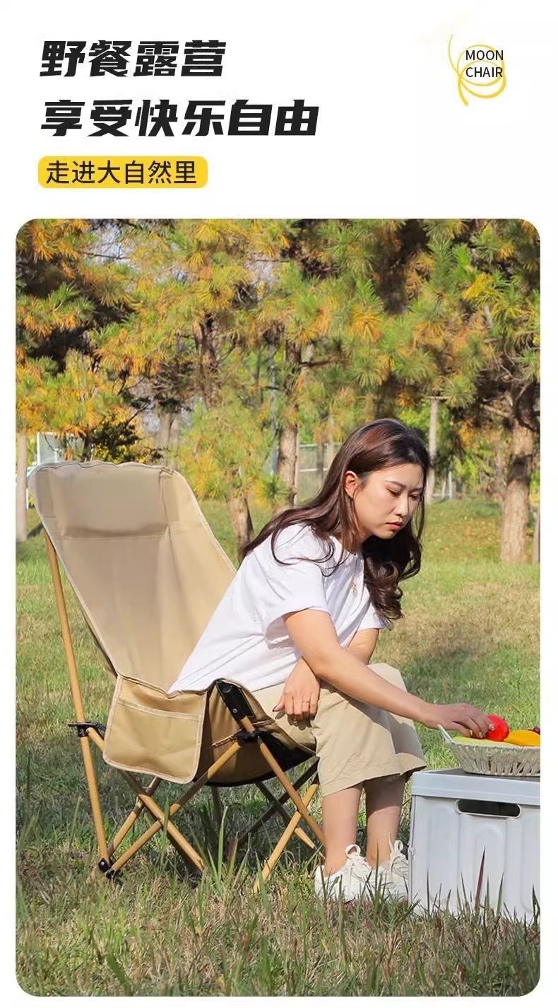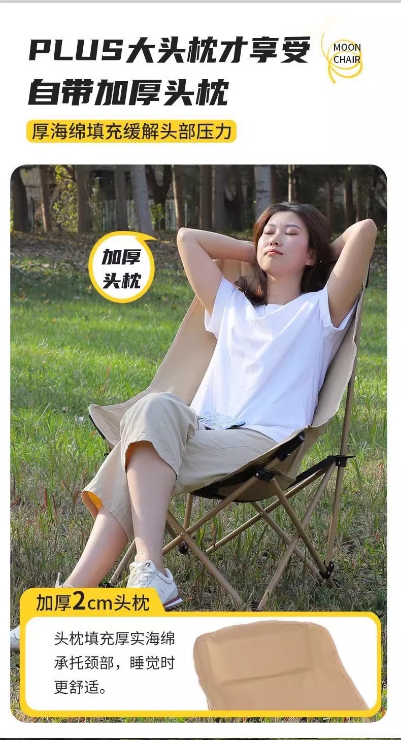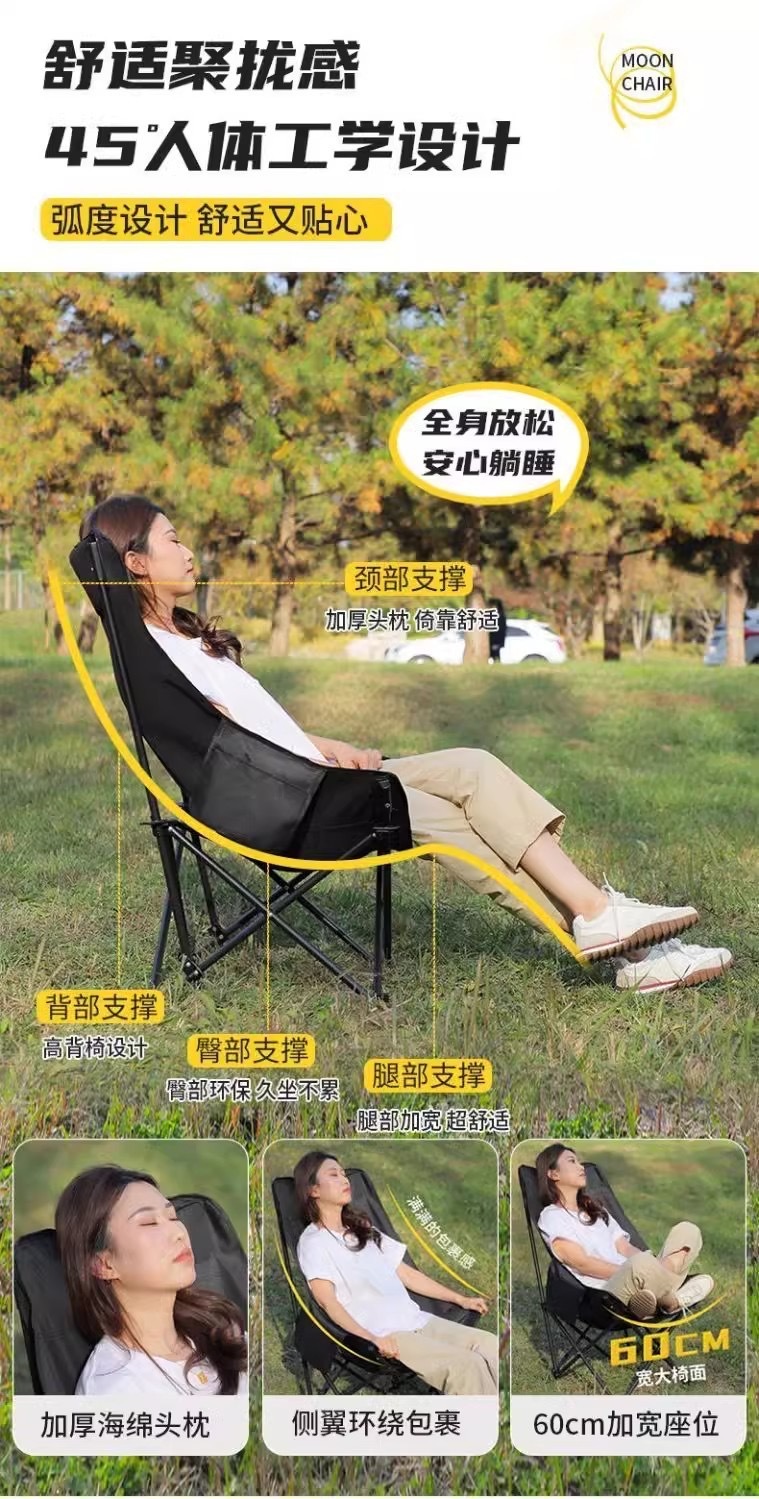 戶外折曡椅現代簡約三擋調節折曡靠背椅露營可攜式月亮椅