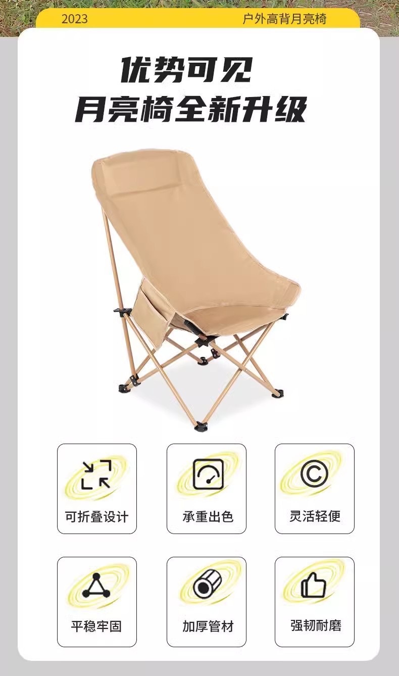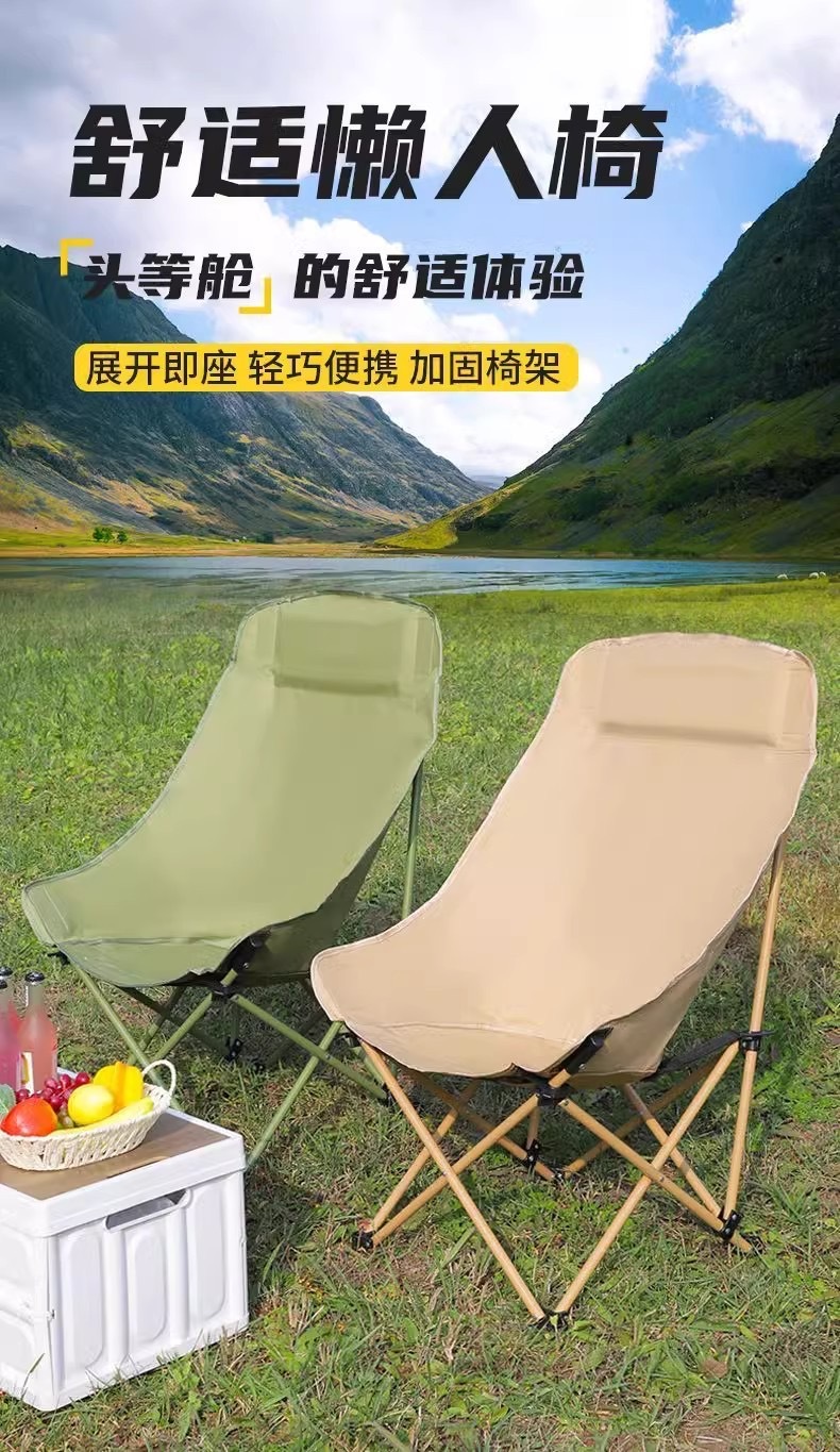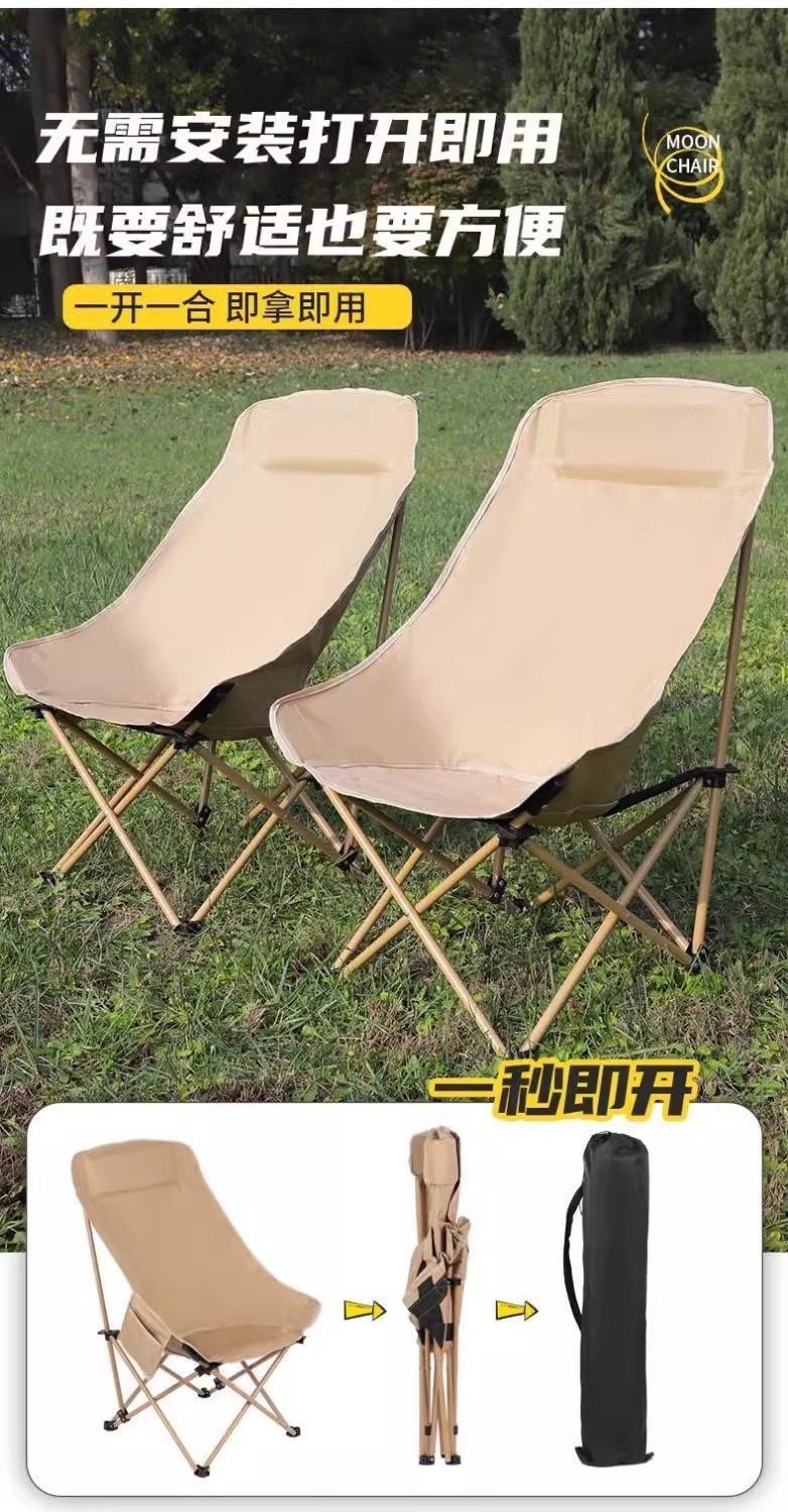 戶外折曡椅現代簡約三擋調節折曡靠背椅露營可攜式月亮椅