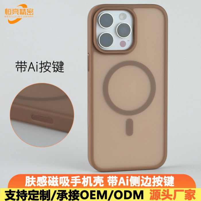 適用蘋果17promax手機殼iPhone16proAI按鍵16plus膚感磁吸沙漠金