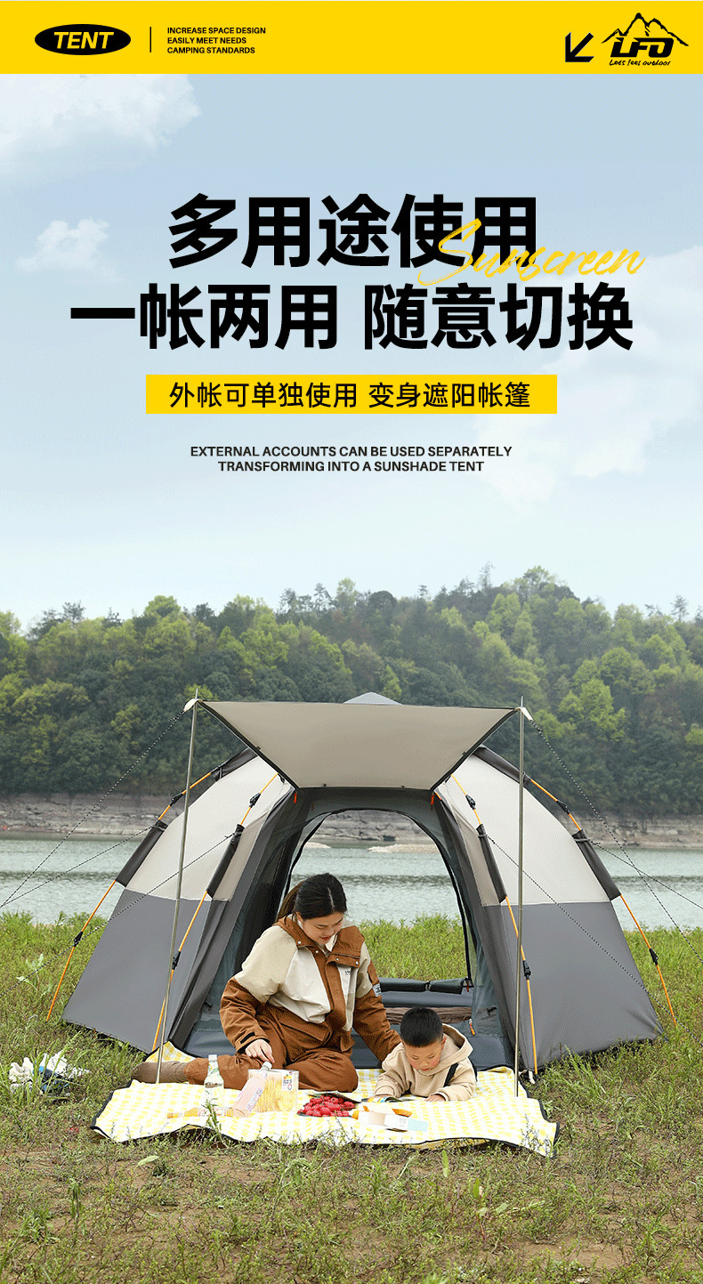 路放折曡可攜式天幕野營全自動速開露營加厚雙層防雨防曬遮陽帳篷