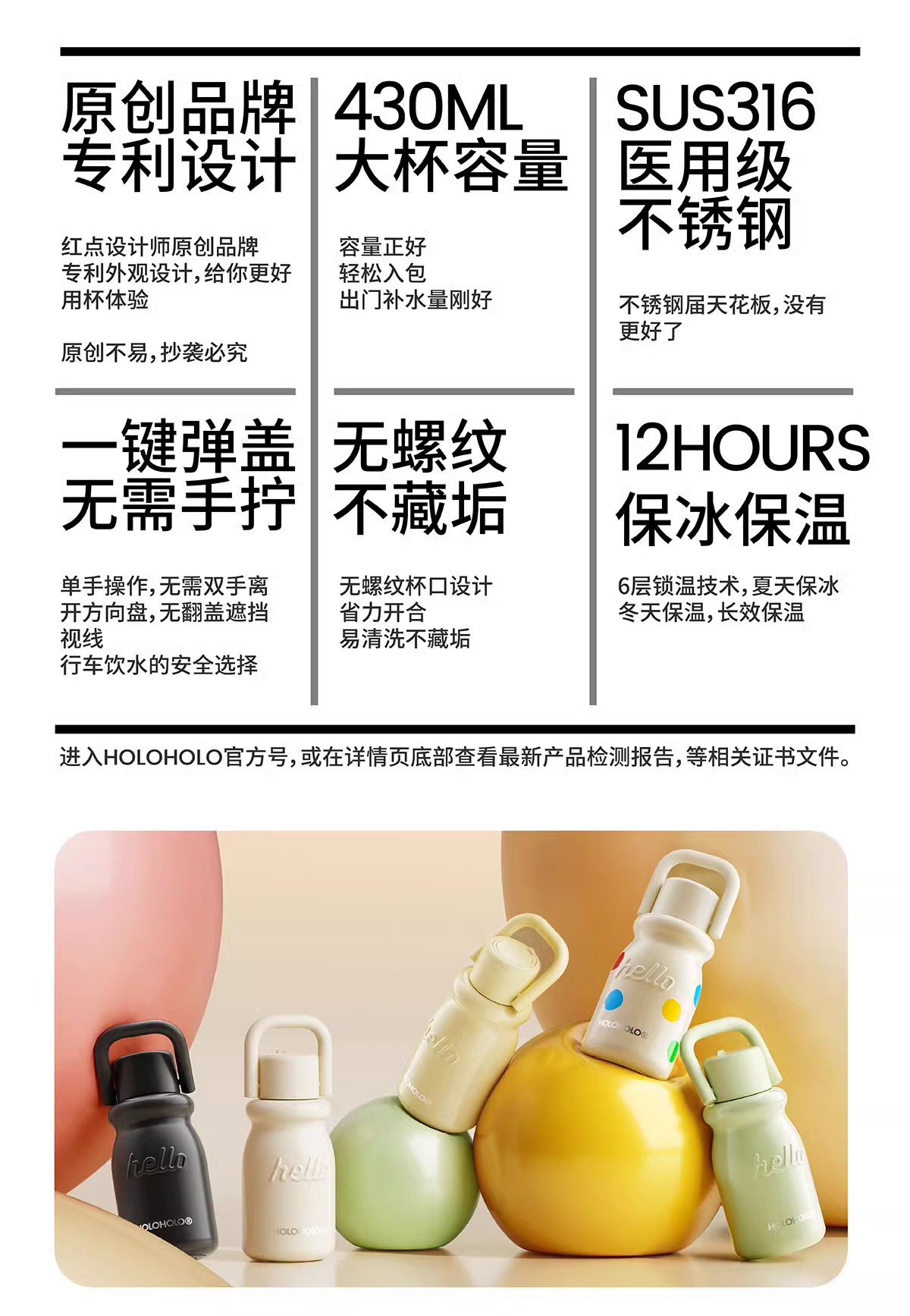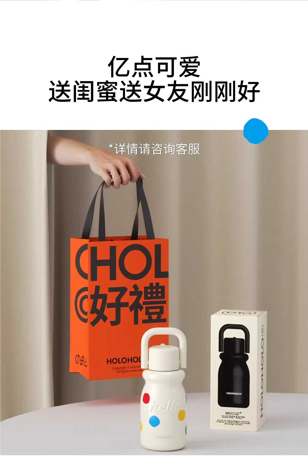 holoholo小奶杯子新款2024隨行咖啡保溫杯女高顔值可攜式不鏽鋼水杯