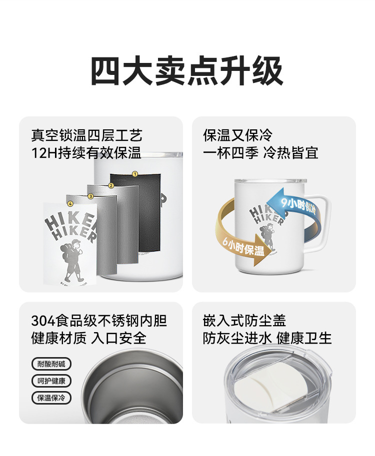 伯希和HIKER系列戶外保溫杯露營不鏽鋼野餐水杯咖啡杯子茶杯