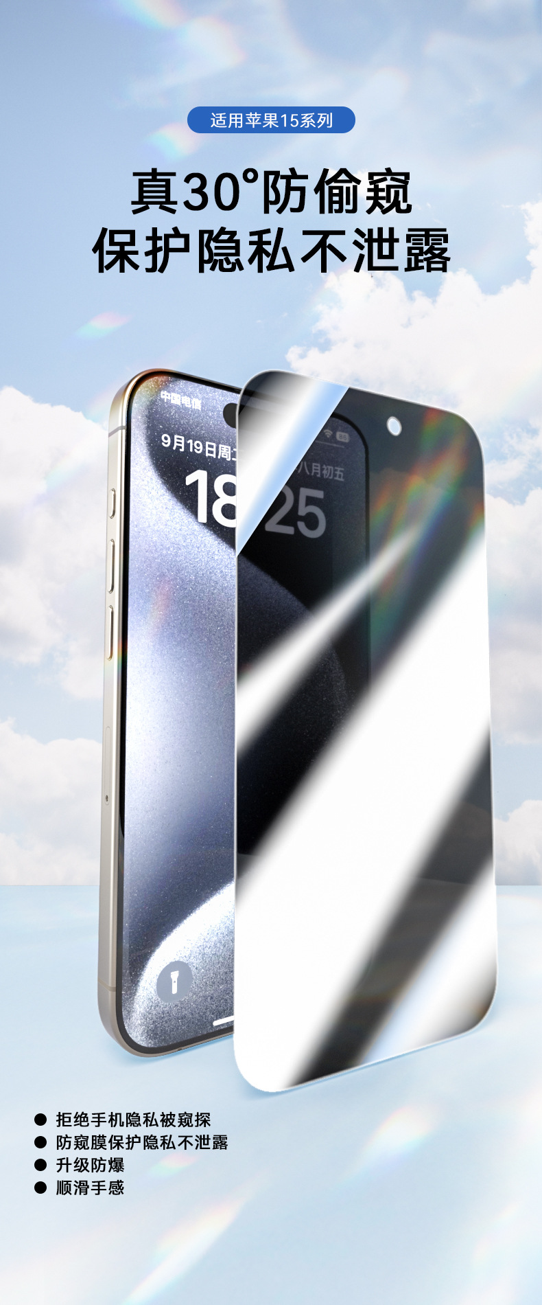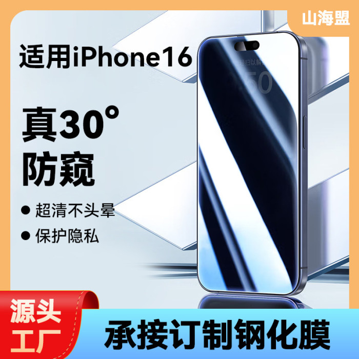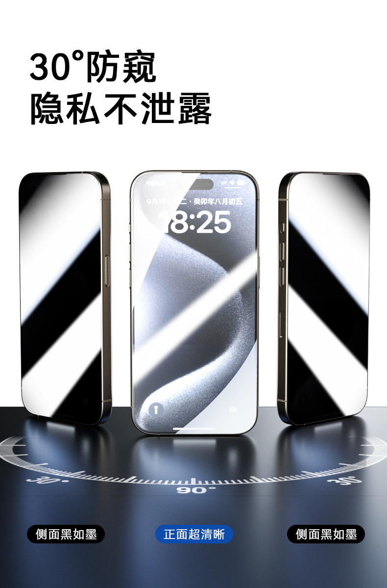 適用iPhone16系列15/14鋼化膜防媮窺防爆玻璃膜膜蘋果16防媮窺