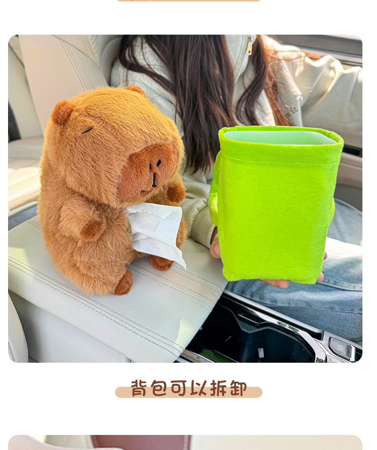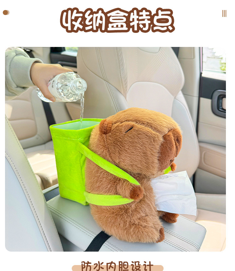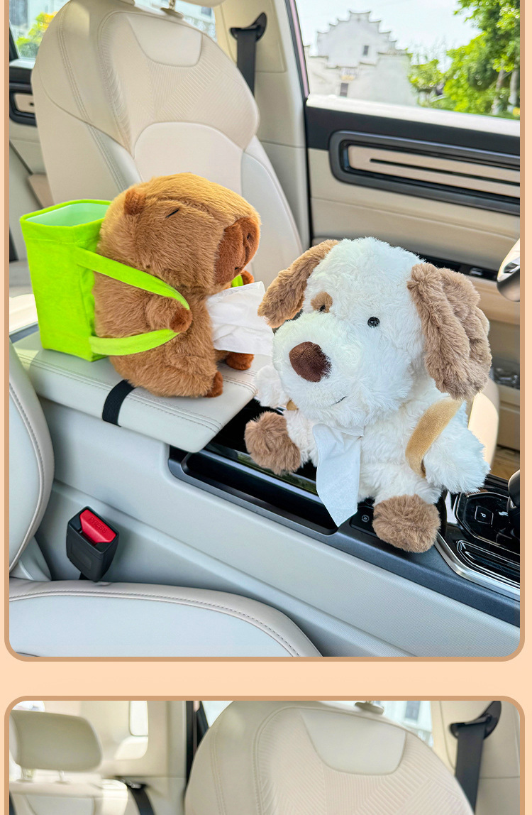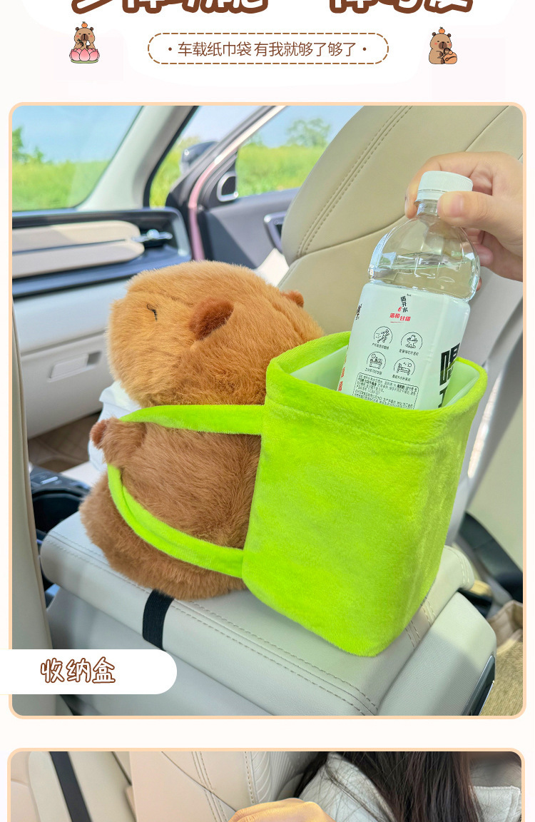 車用紙巾盒卡皮巴拉多功能垃圾桶扶手箱收納二合一汽車卡通抽紙盒