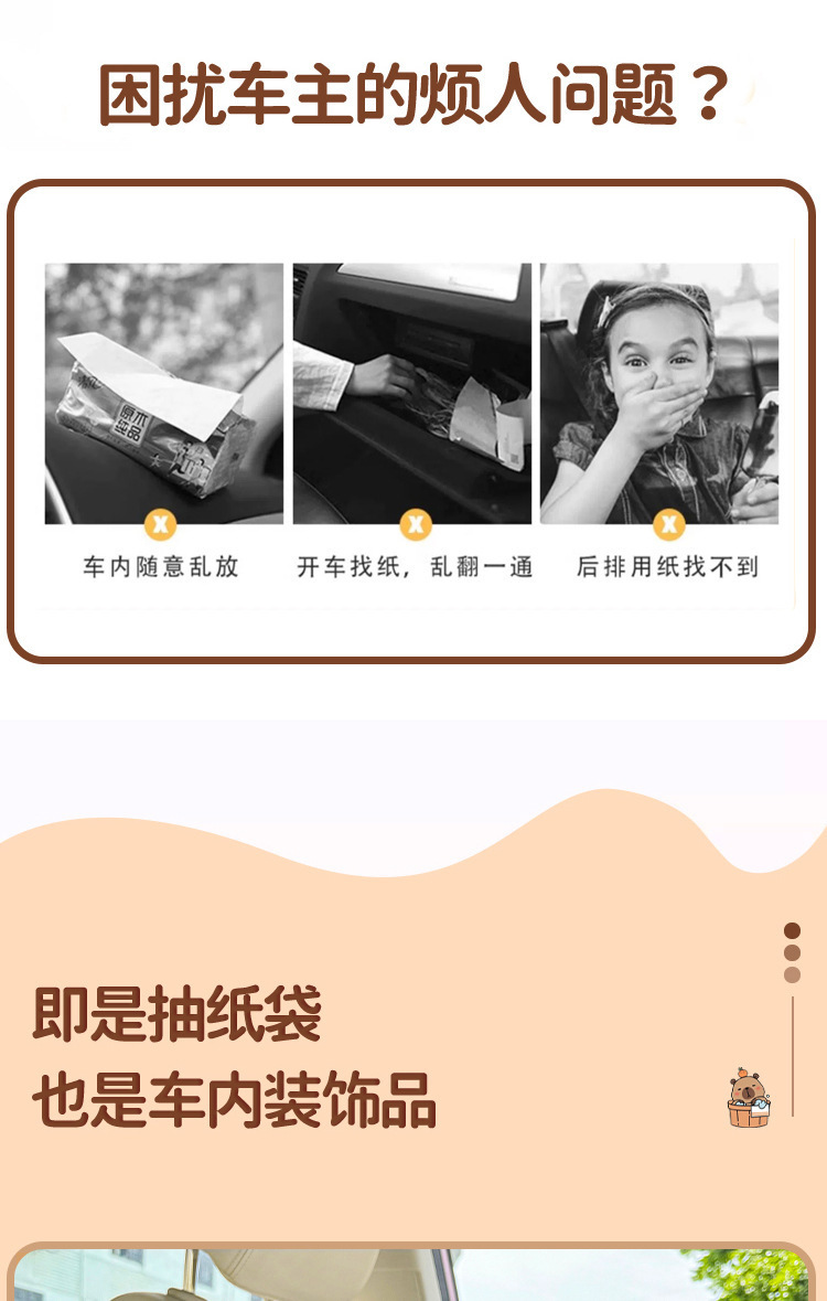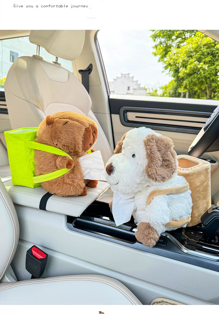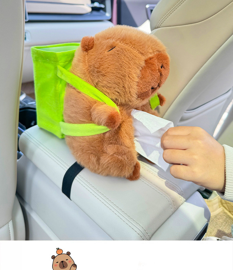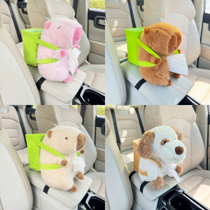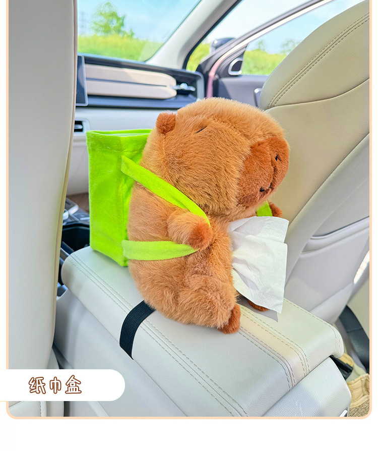 車用紙巾盒卡皮巴拉多功能垃圾桶扶手箱收納二合一汽車卡通抽紙盒
