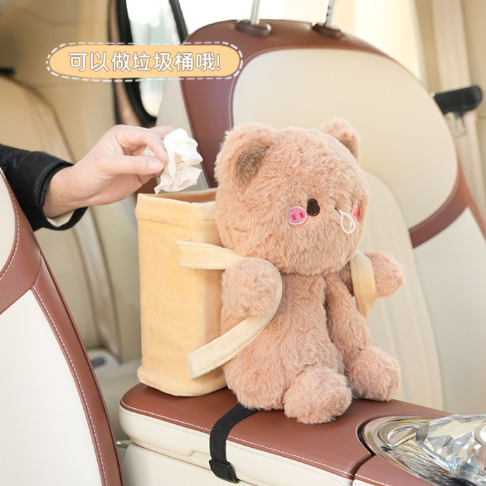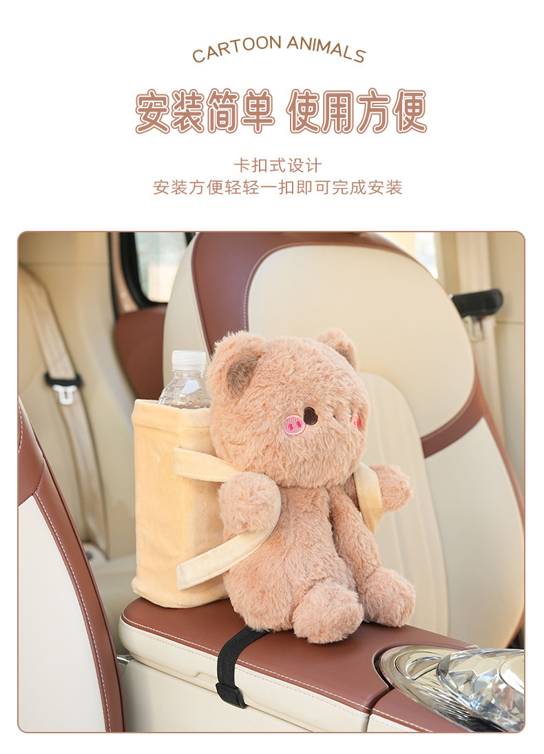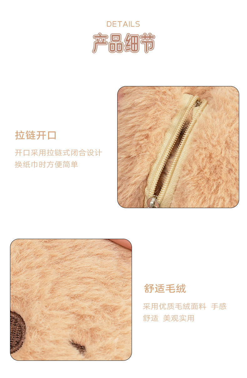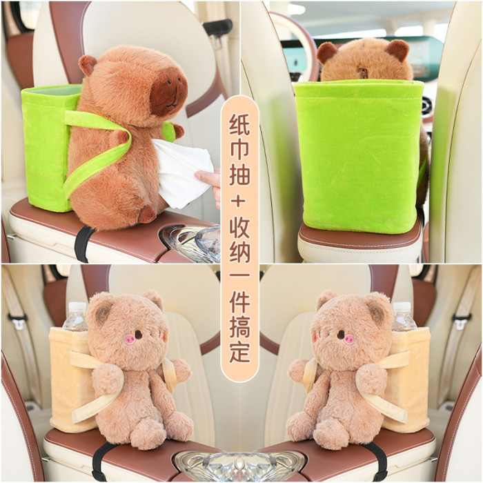 卡皮巴拉紙巾盒收納桶餐巾可愛毛絨水豚車用扶手箱抽紙收納盒