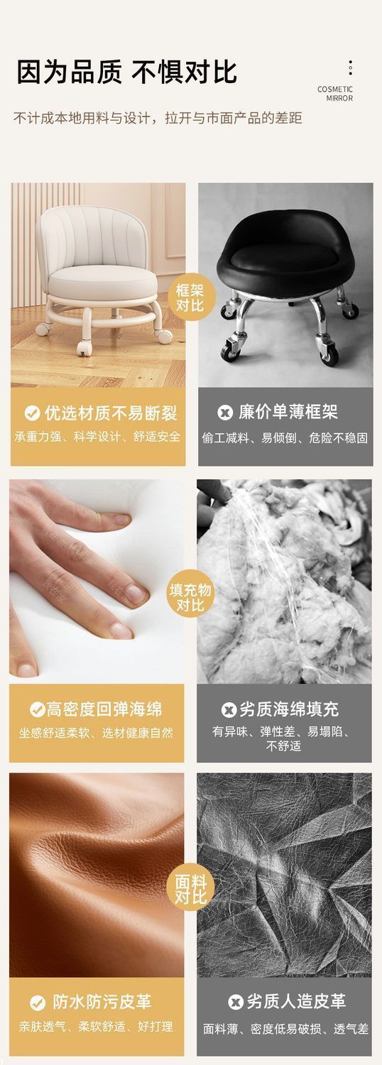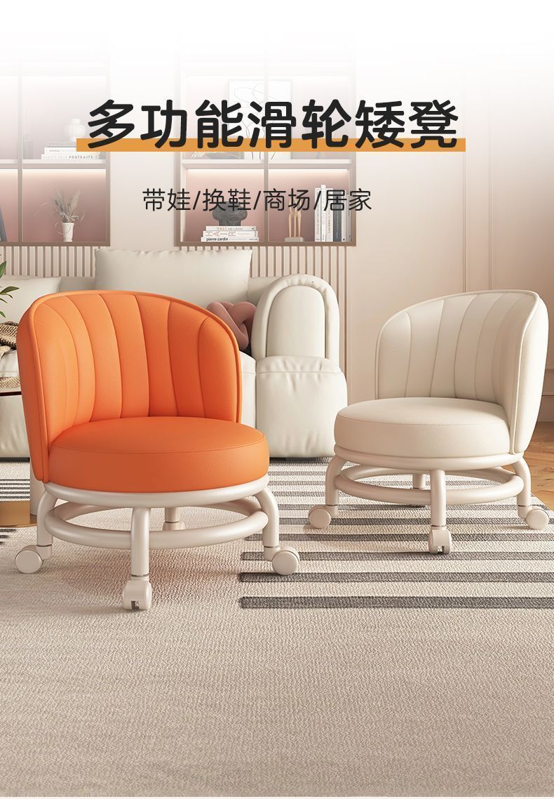 高級感家門口可移動換鞋凳客廳臥室滑輪矮凳萬向輪小凳子帶娃板凳