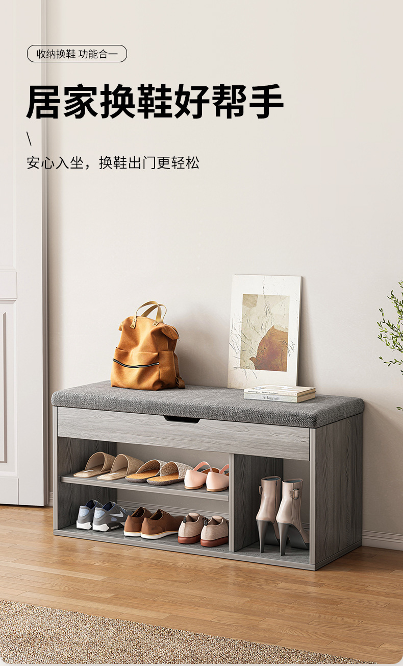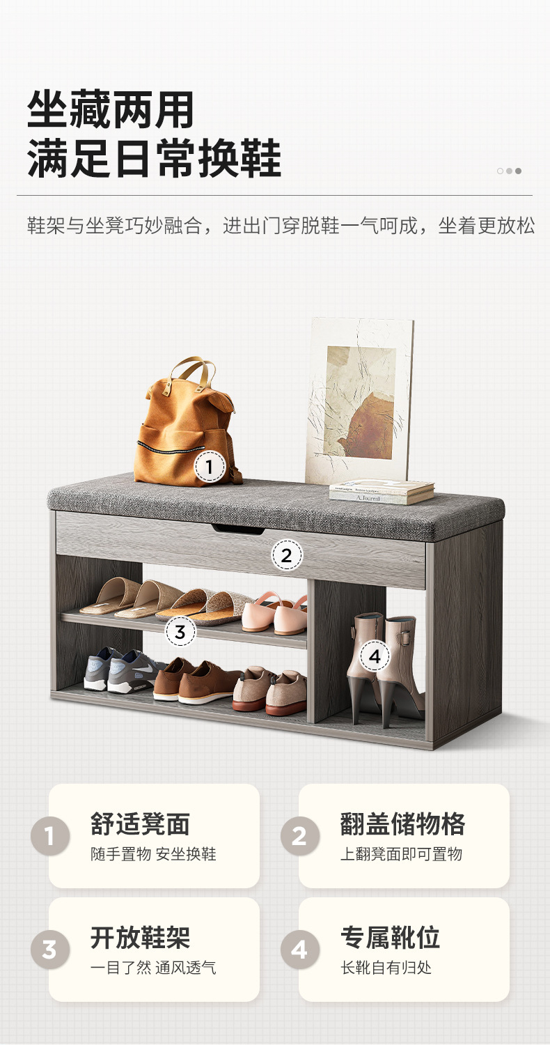 輕奢入戶換鞋凳家用門口鞋架可坐式一體長條軟包穿鞋凳雙層鞋架