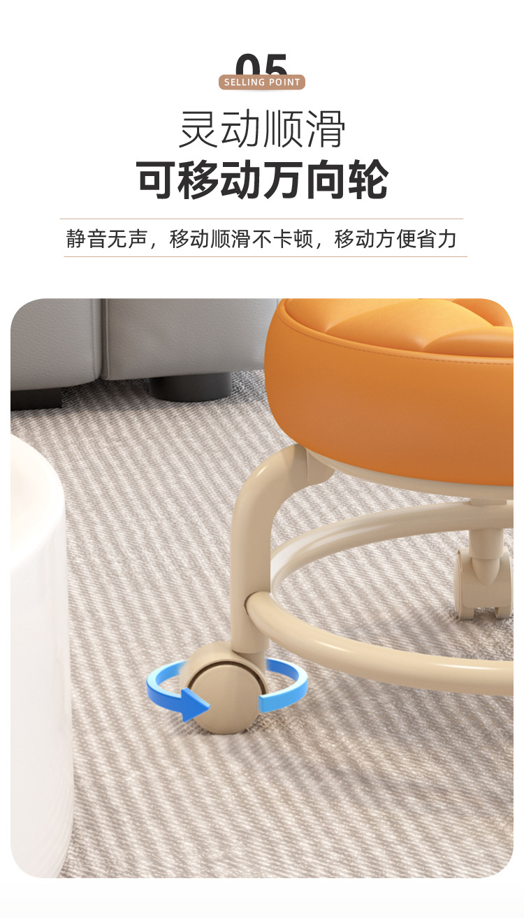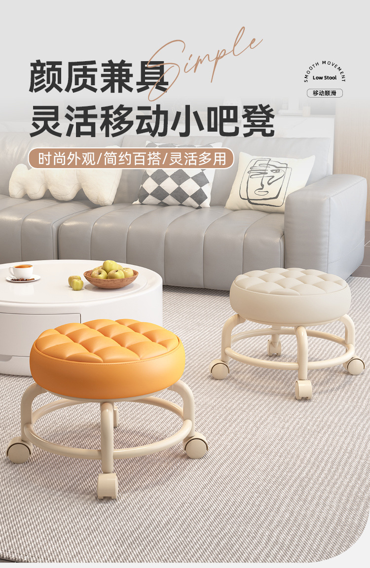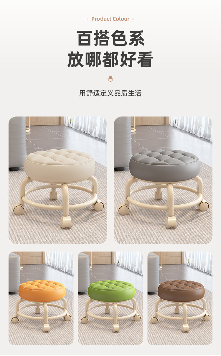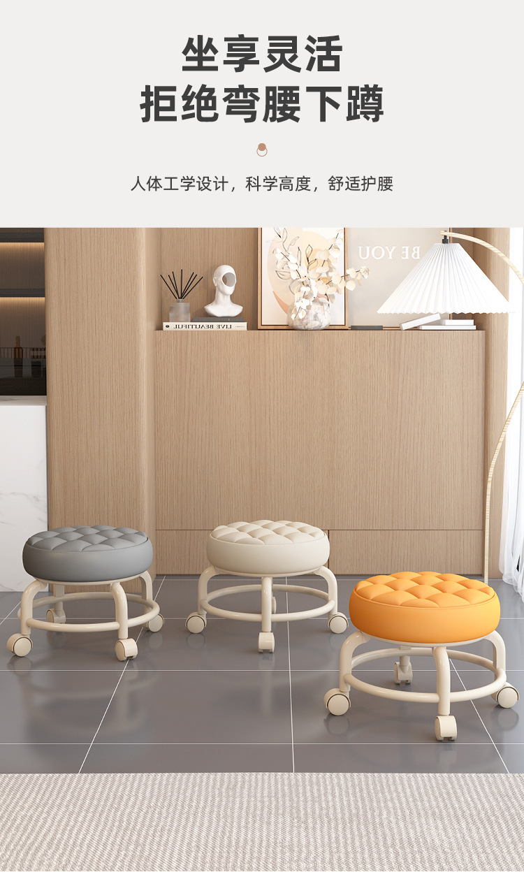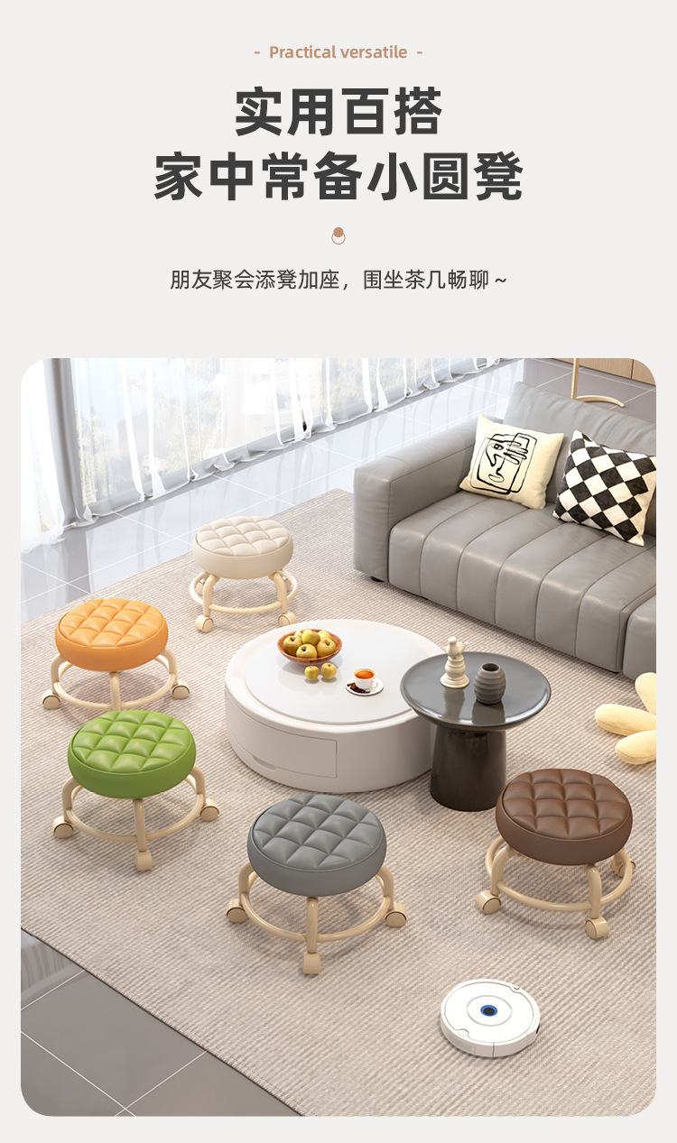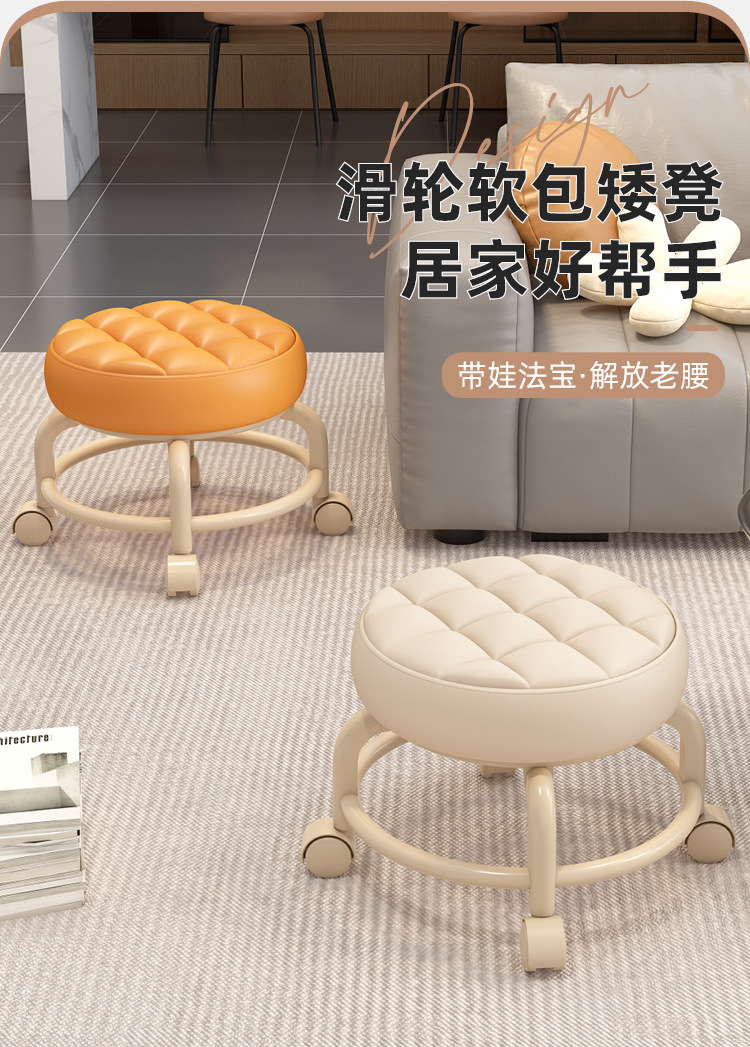 小凳子懶人靜音萬向輪換鞋凳美縫圓凳兒童學步小板凳家用滑輪矮凳