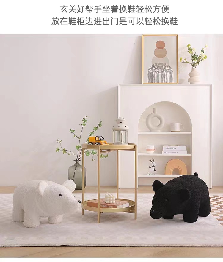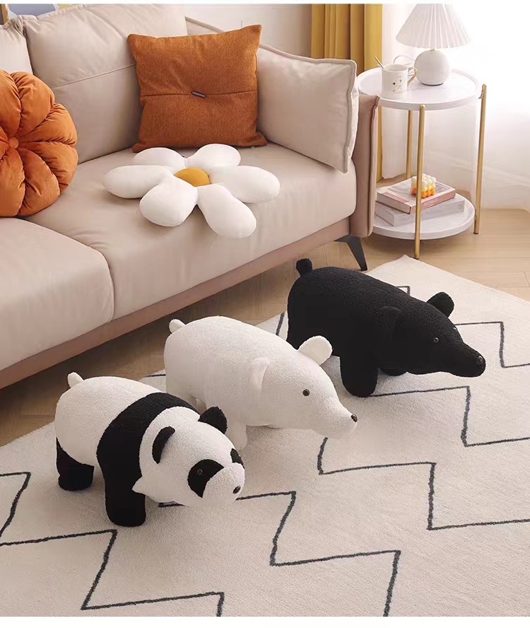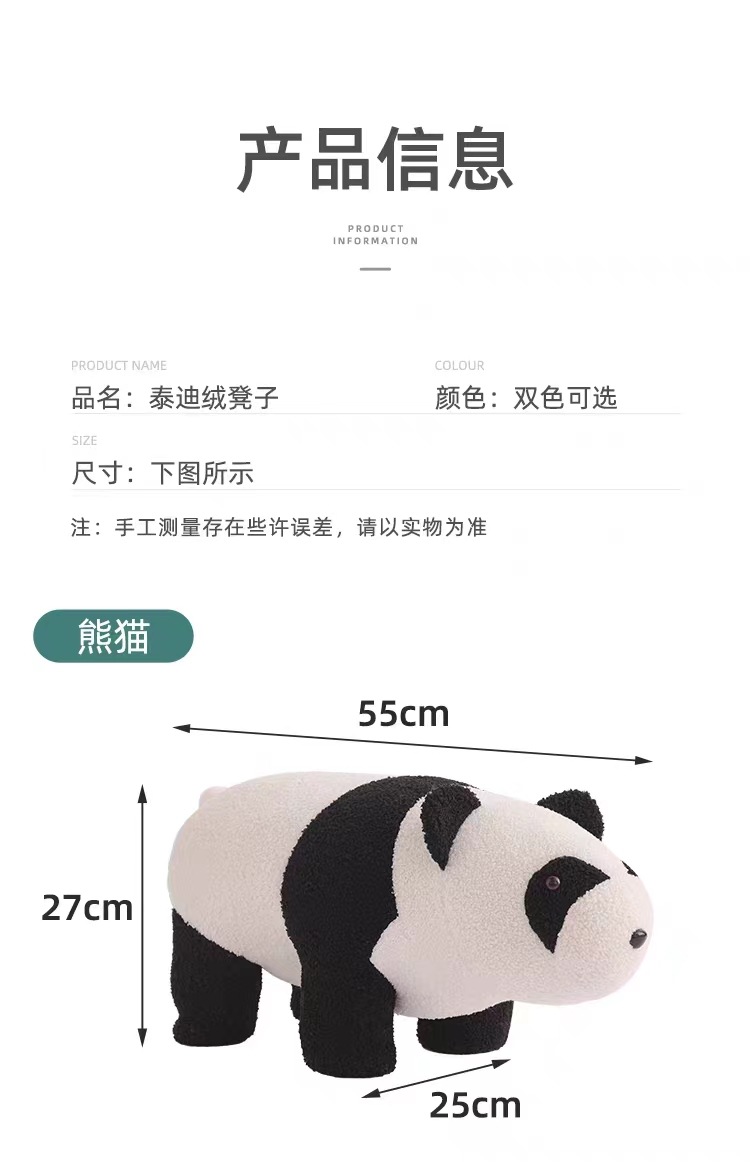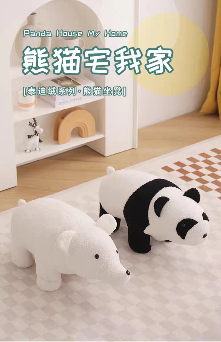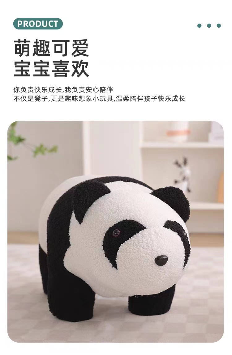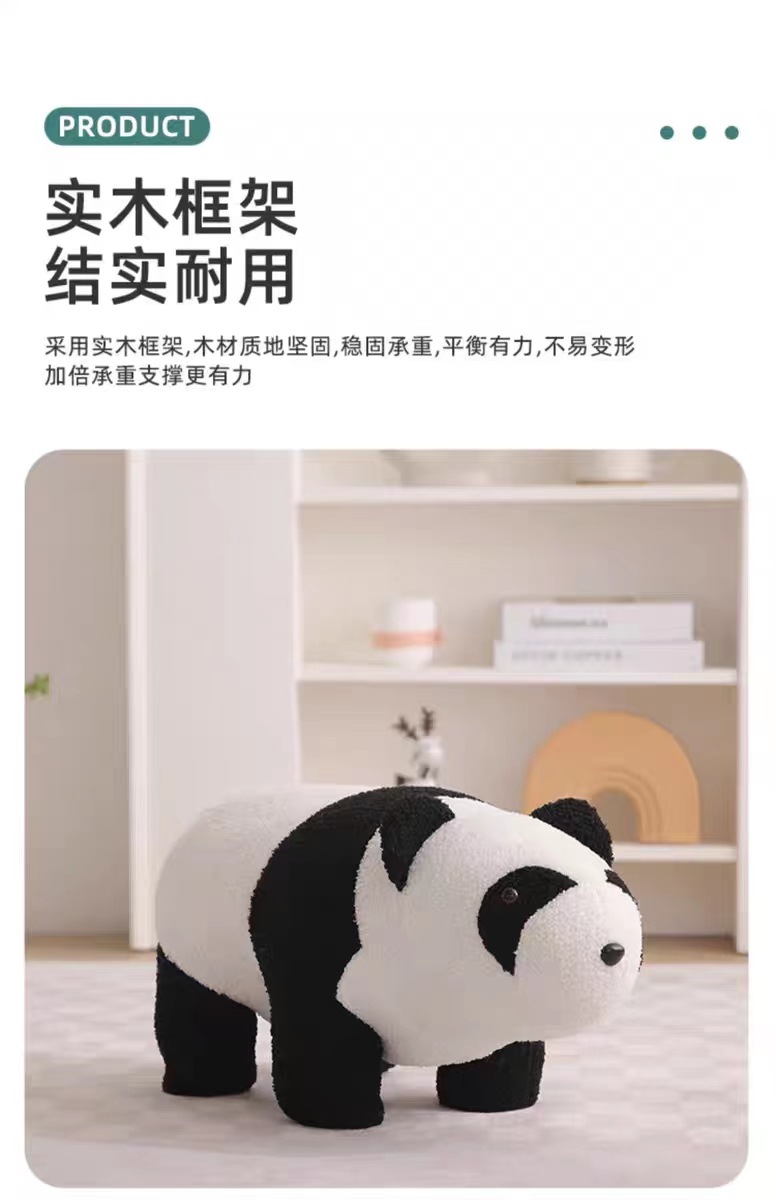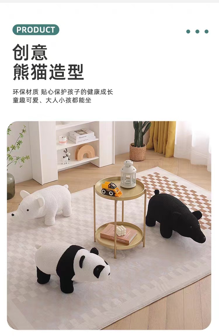 兒童動物坐凳可愛熊貓卡通換鞋凳家用客廳創意擺件矮凳可拆洗腳凳