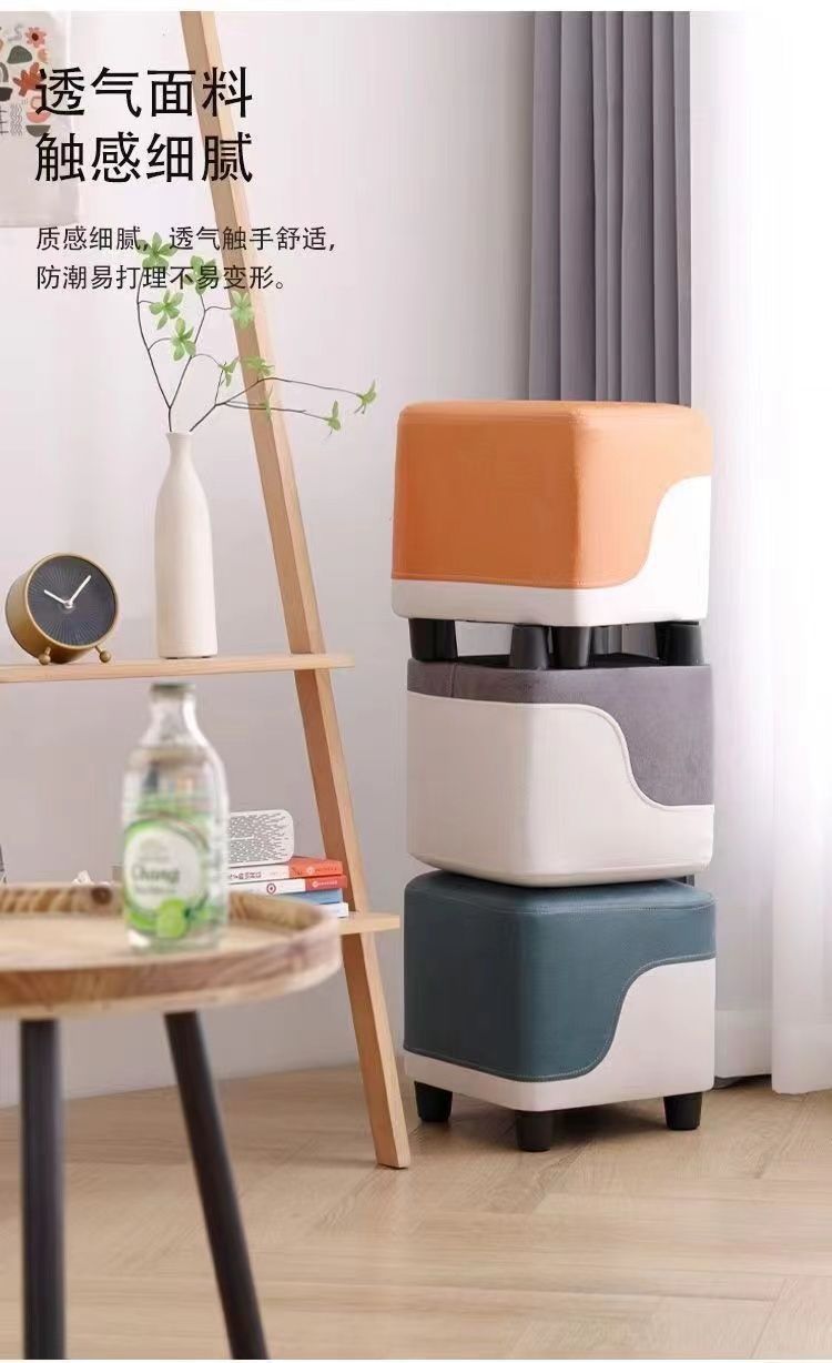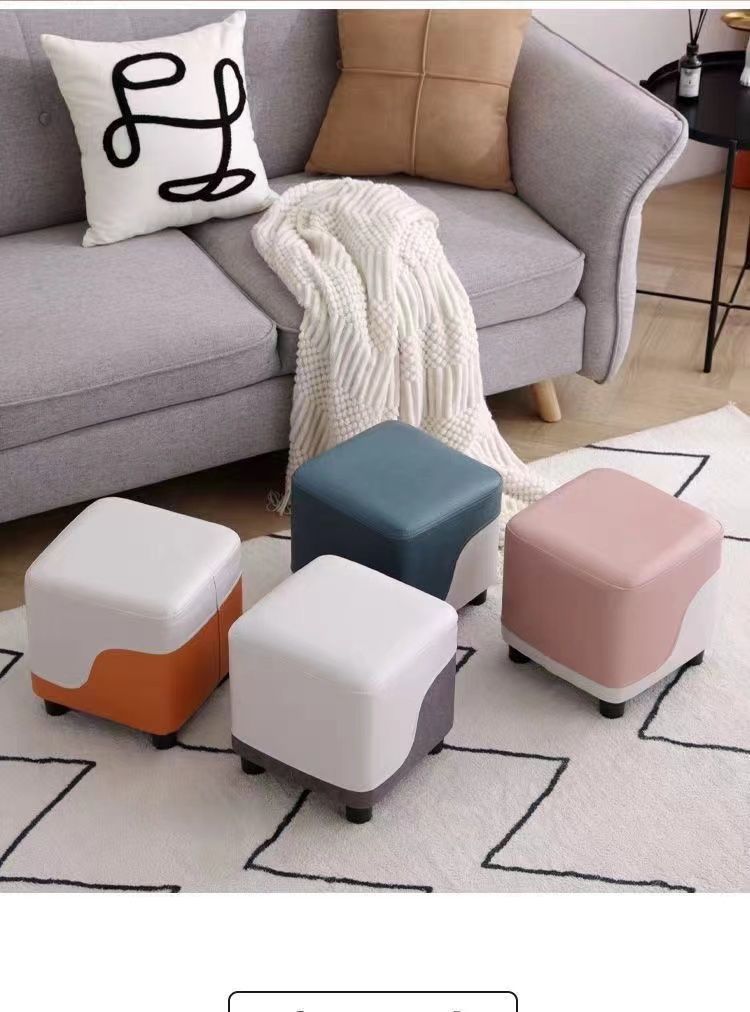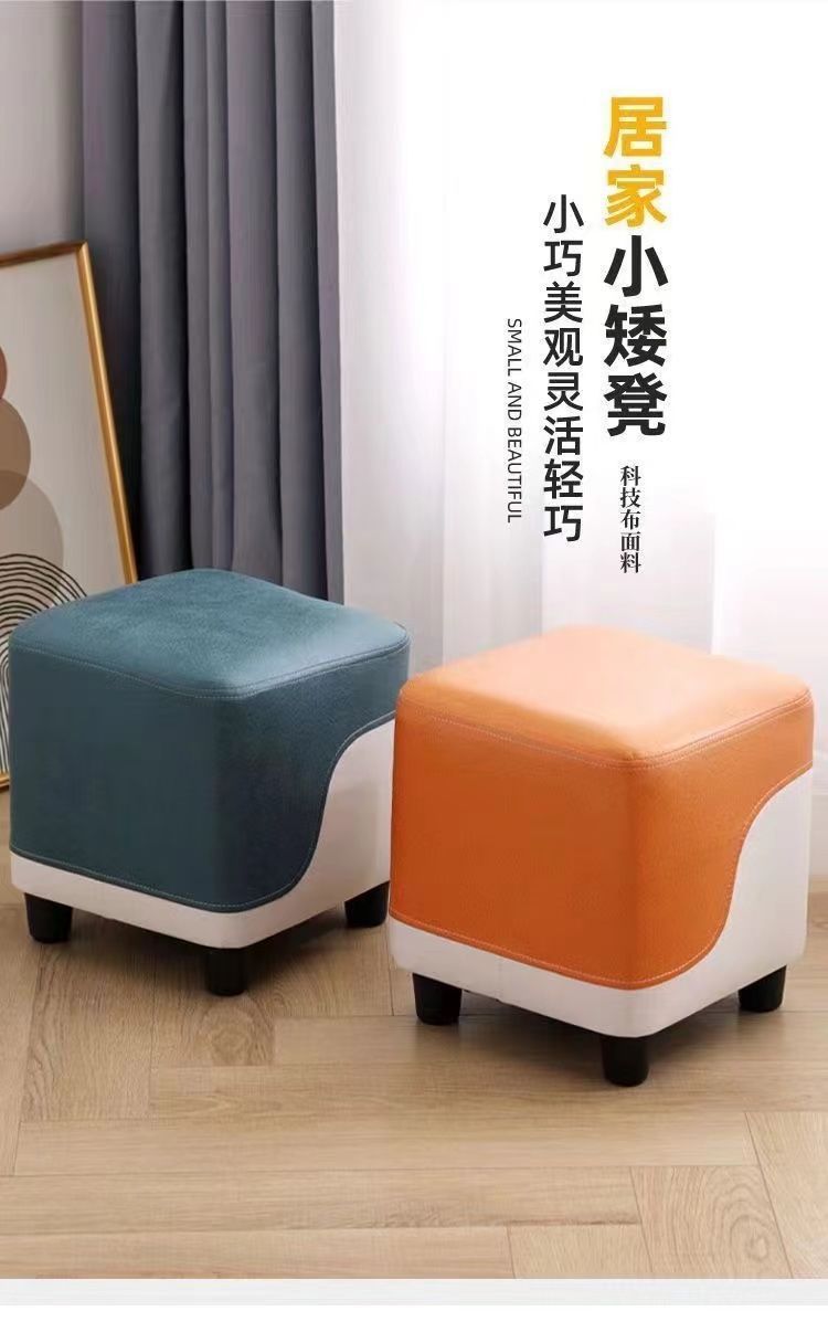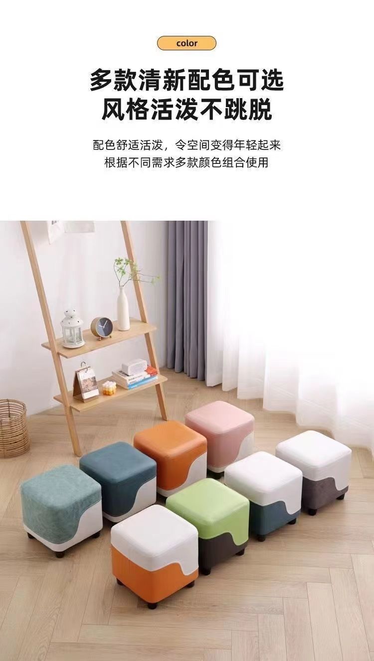 科技布家用小凳子客廳小矮凳茶幾凳子網紅拼色換鞋凳皮墩圓凳方凳