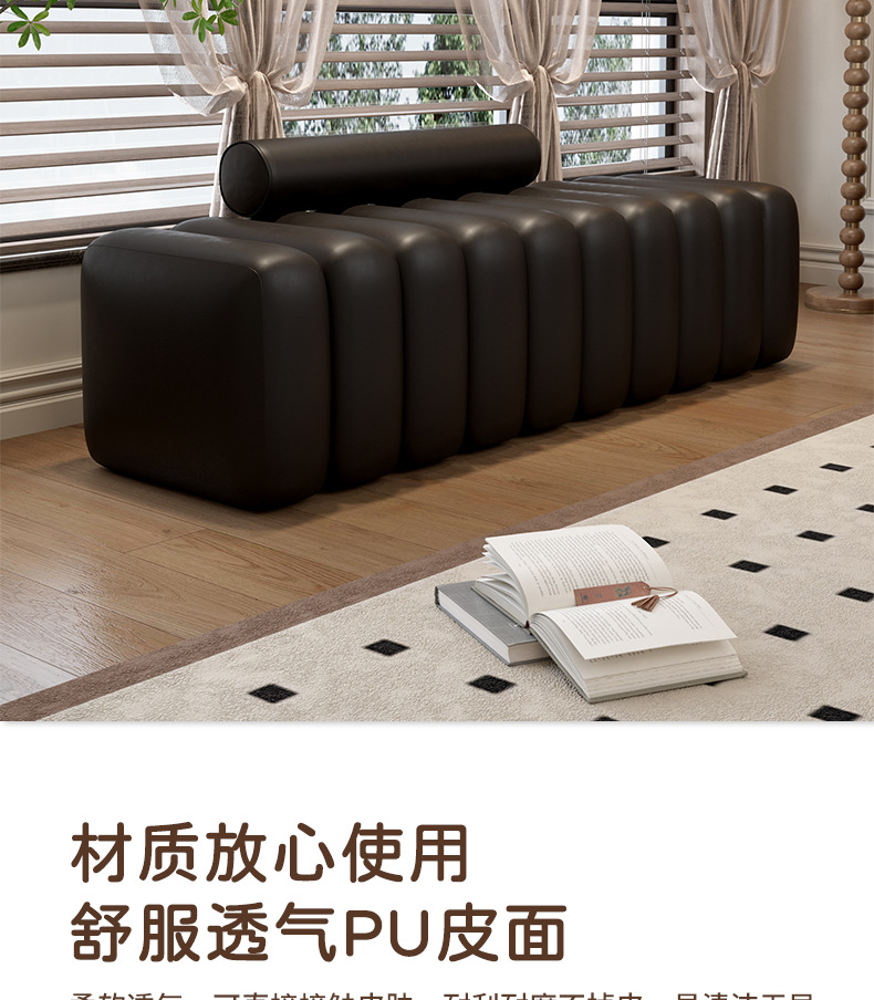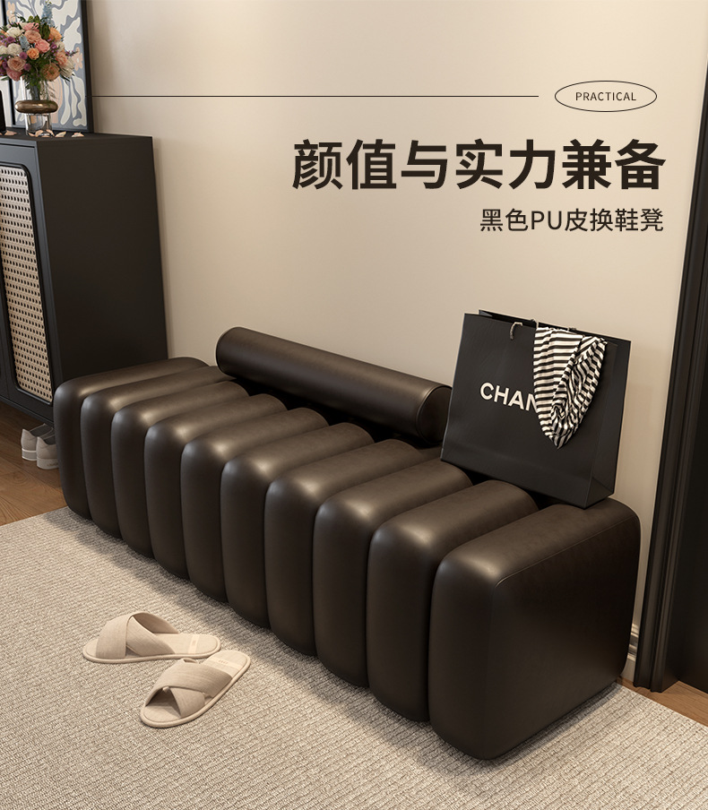 家用入戶門口換鞋凳輕奢衣帽間長條凳沙發凳服裝店休息凳皮革軟包