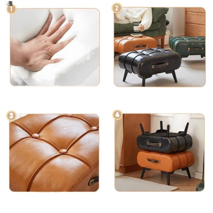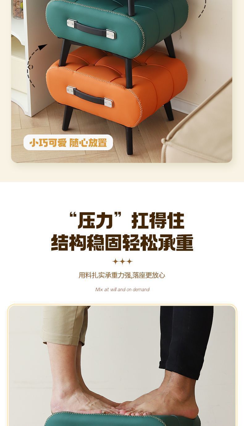 輕奢高級感小凳子客廳茶幾沙發凳家用矮凳腳踏腳凳換鞋凳門口皮墩
