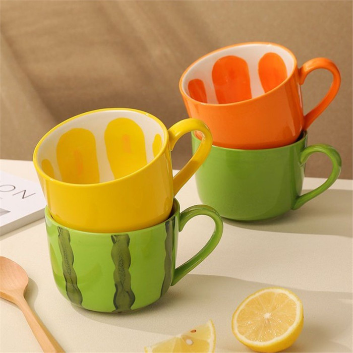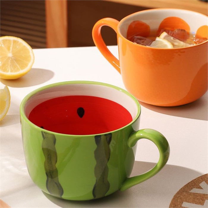 小紅書同款西瓜杯女高顔值陶瓷杯可愛水果杯夏季創意馬克杯咖啡杯