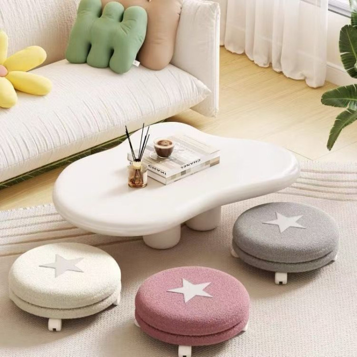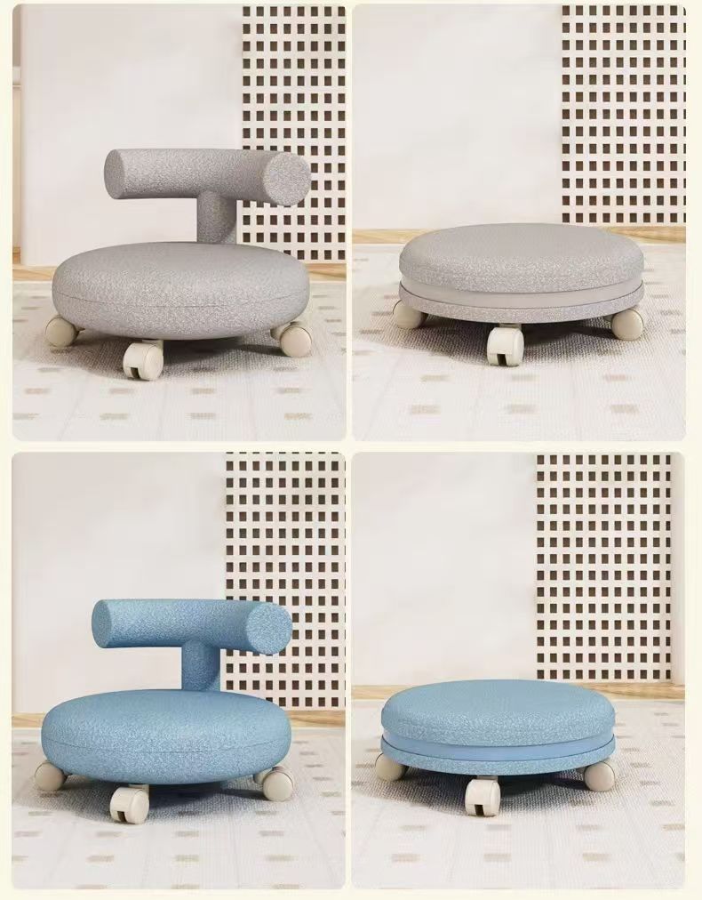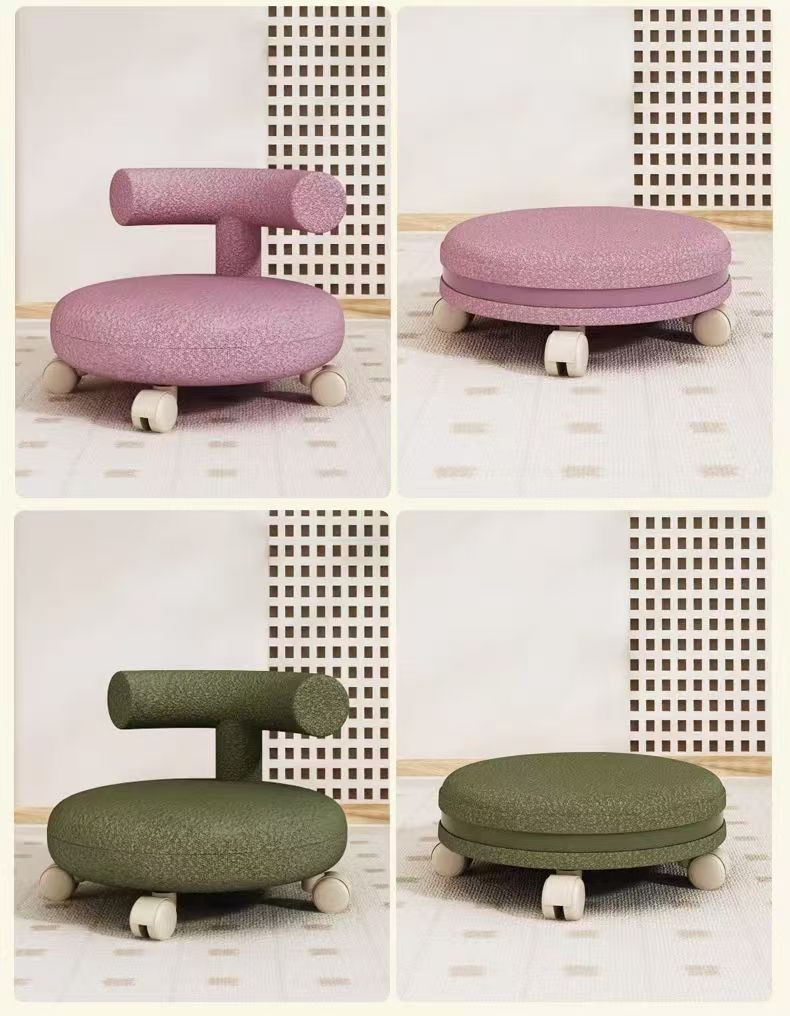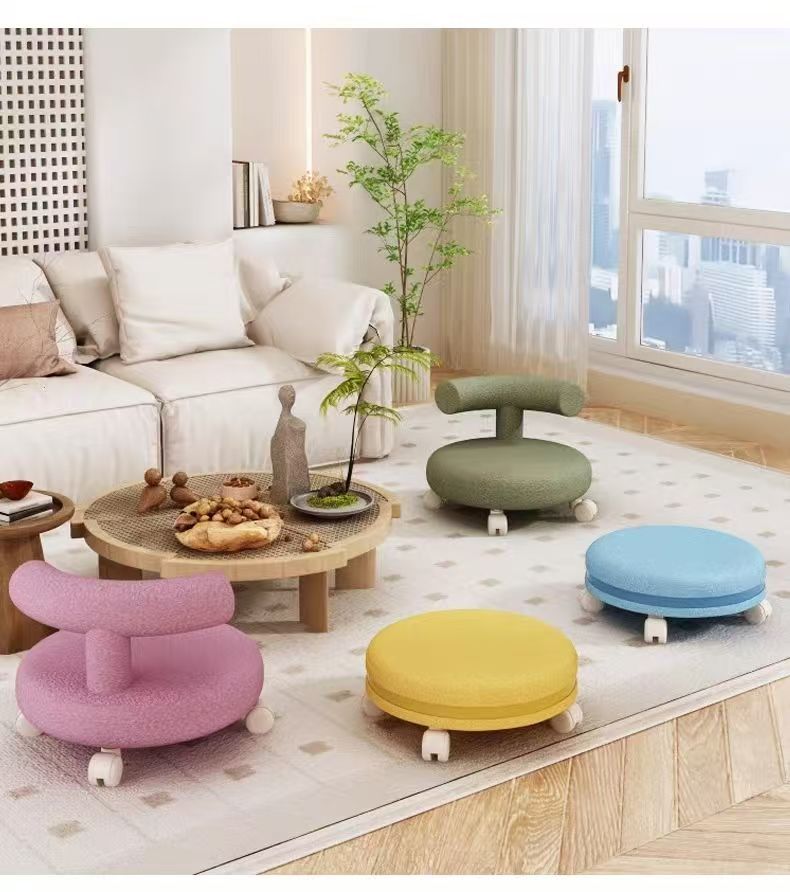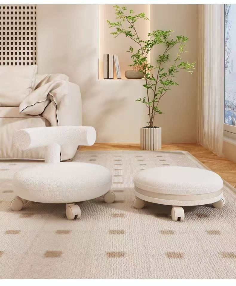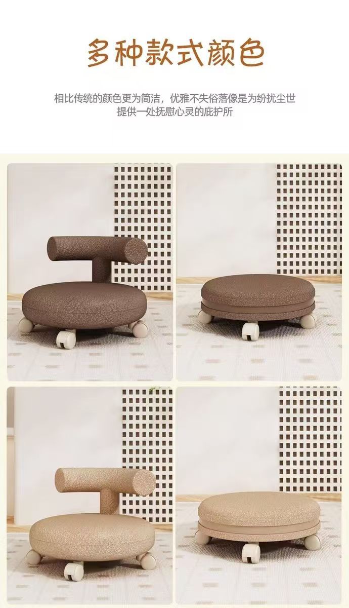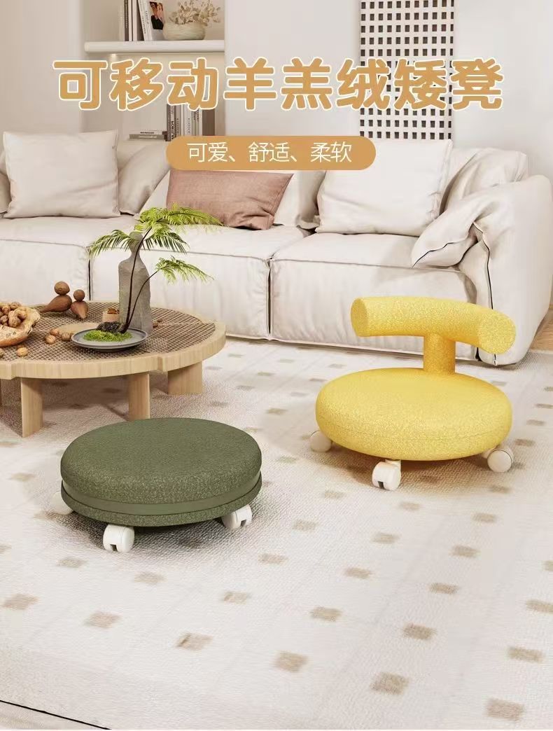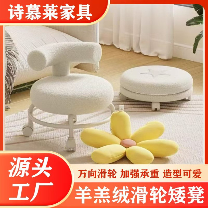 新款羊羔絨家用滑輪矮凳美縫美甲萬向輪小凳子兒童學步旋轉換鞋凳