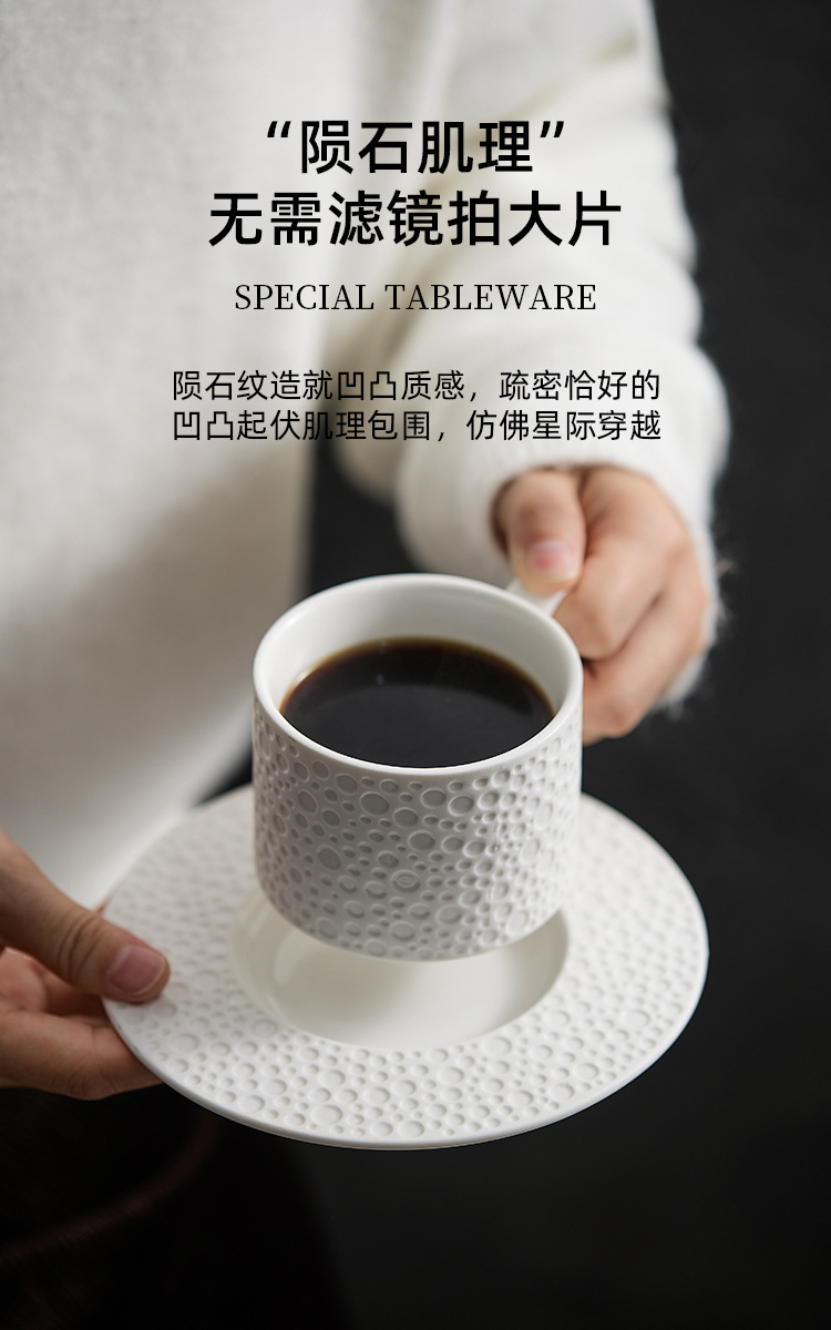 環球石紋陶瓷杯咖啡杯精緻高檔酒店茶餐廳輕奢馬克杯喝水杯碟套裝