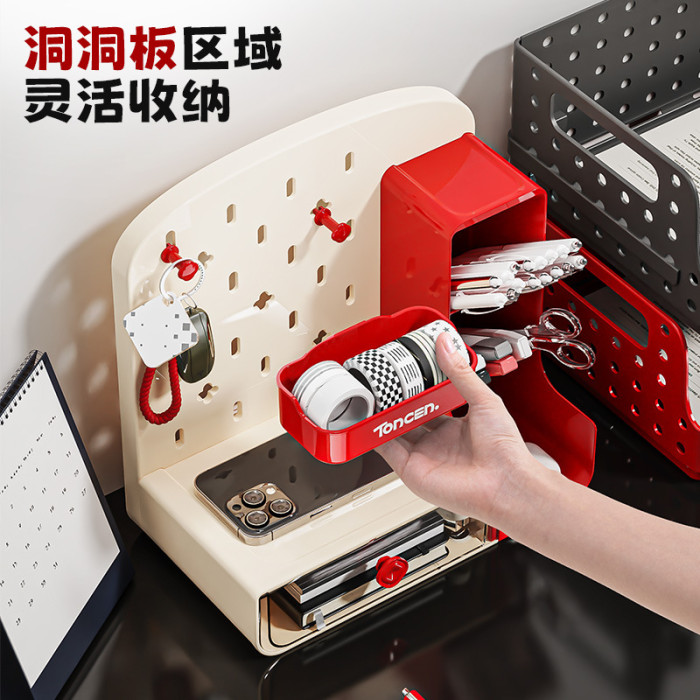 桌面洞洞板收納辦公桌面收納盒抽屜式學生文具整理置物架斜插筆筒