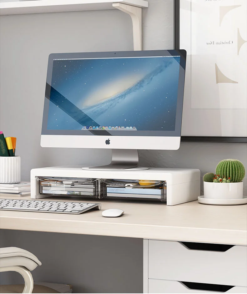 • Dust-proof Material: Made from high-quality plastic, this stand offers dust-proof protection, keeping your monitor clean and free from dust.