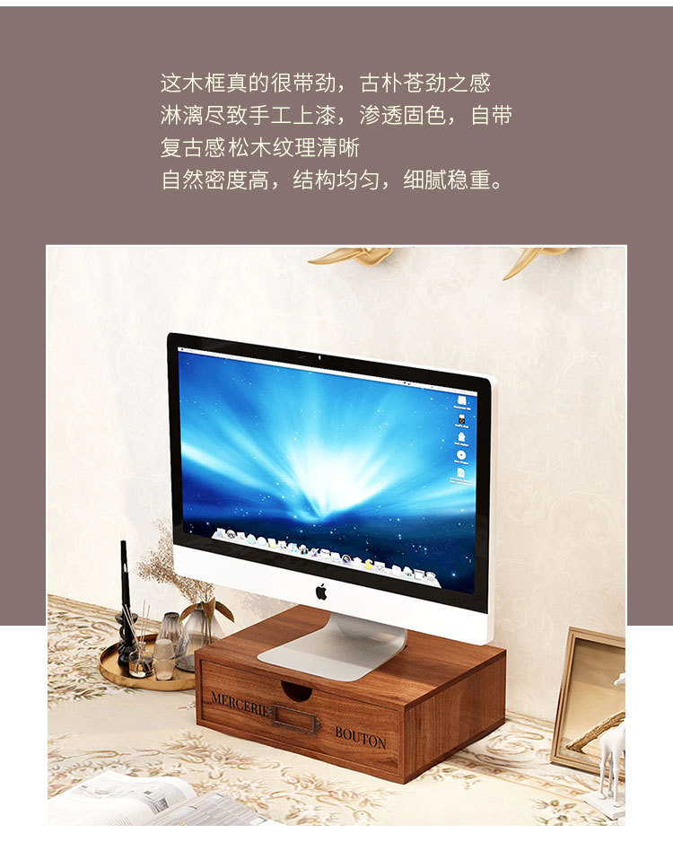 木質電腦增高架辦公桌面收納整理櫃木盒zakka抽屜式化妝品收納盒