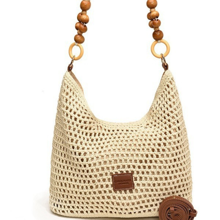 海邊度假沙灘編織包包女2024新款鏤空針織手提包大容量單肩腋下包
