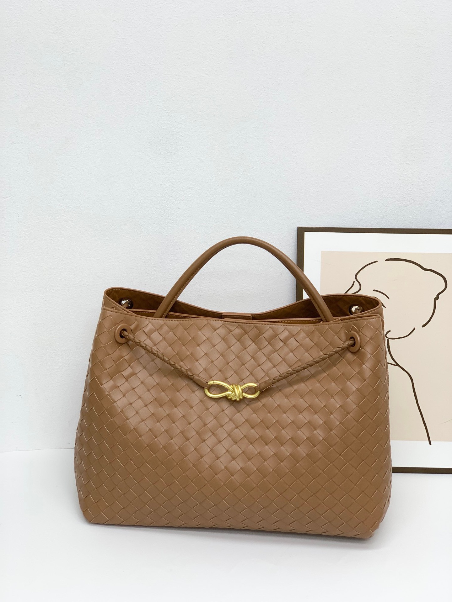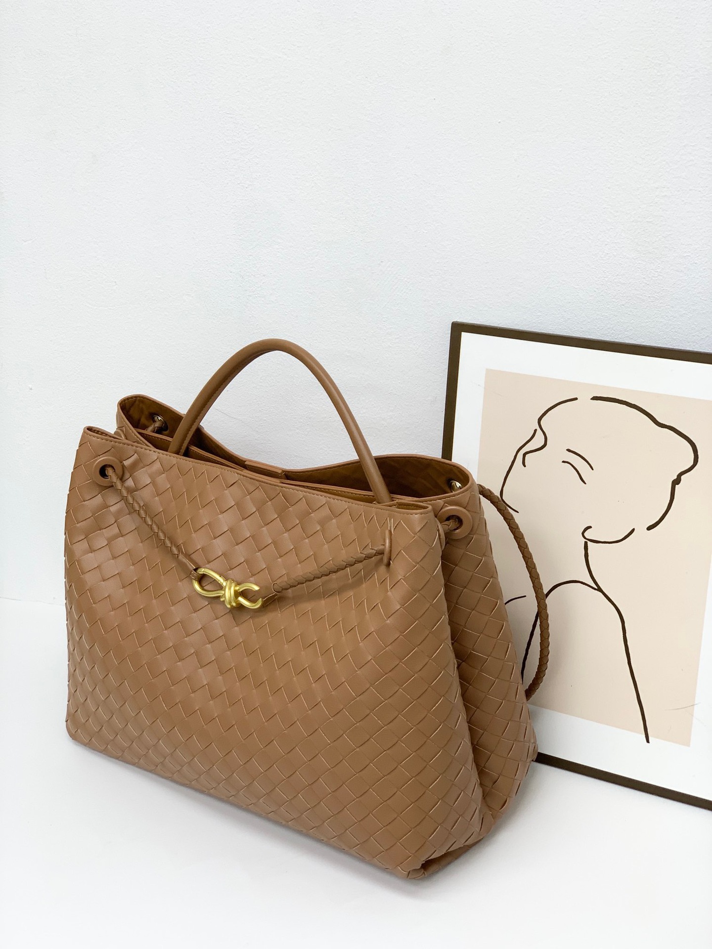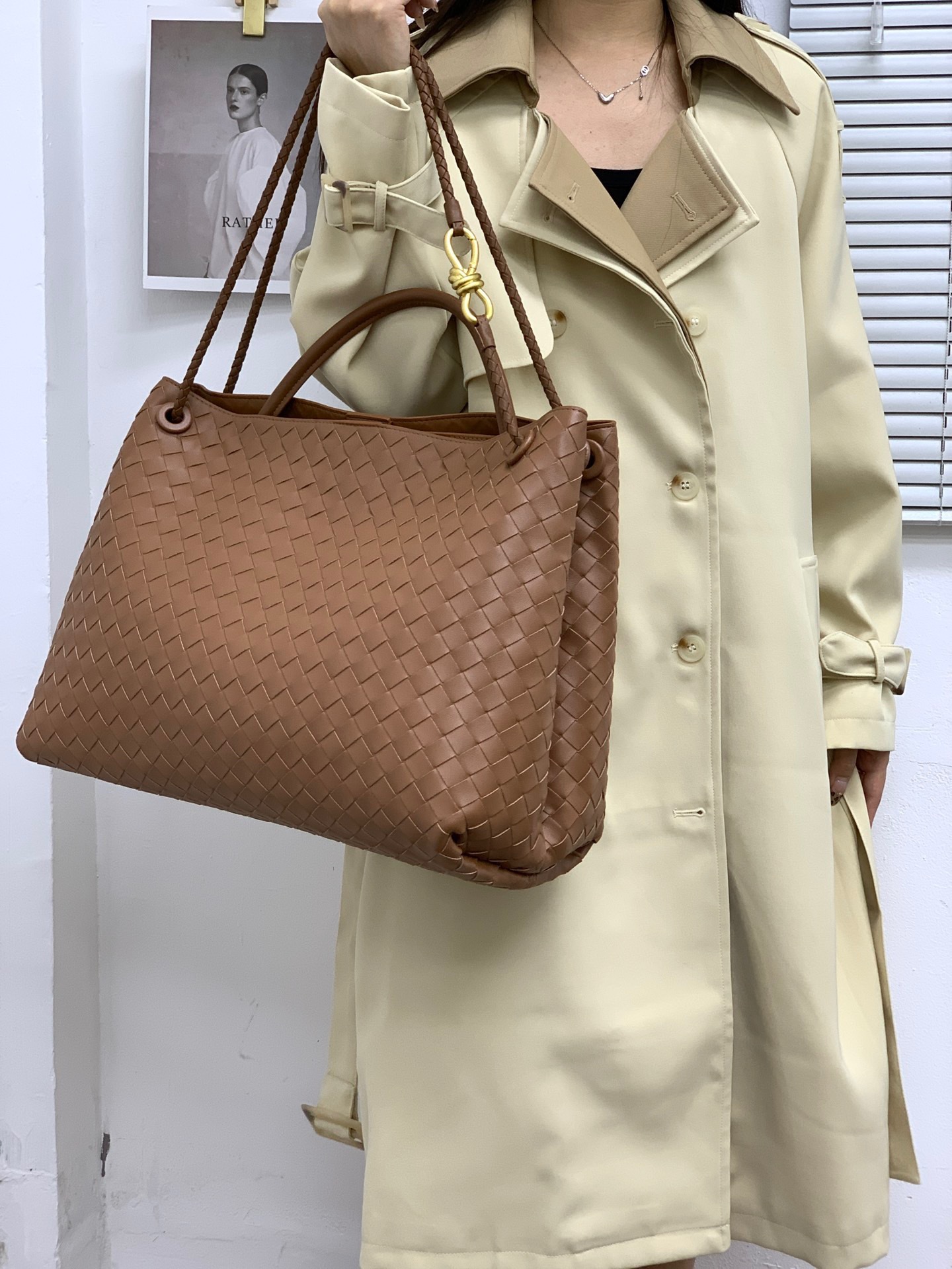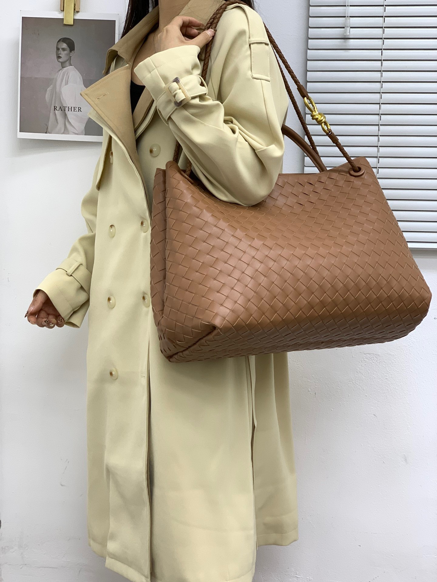 2024蝴蝶結金屬編繩釦編織包包女托特包真皮大容量單肩手提包