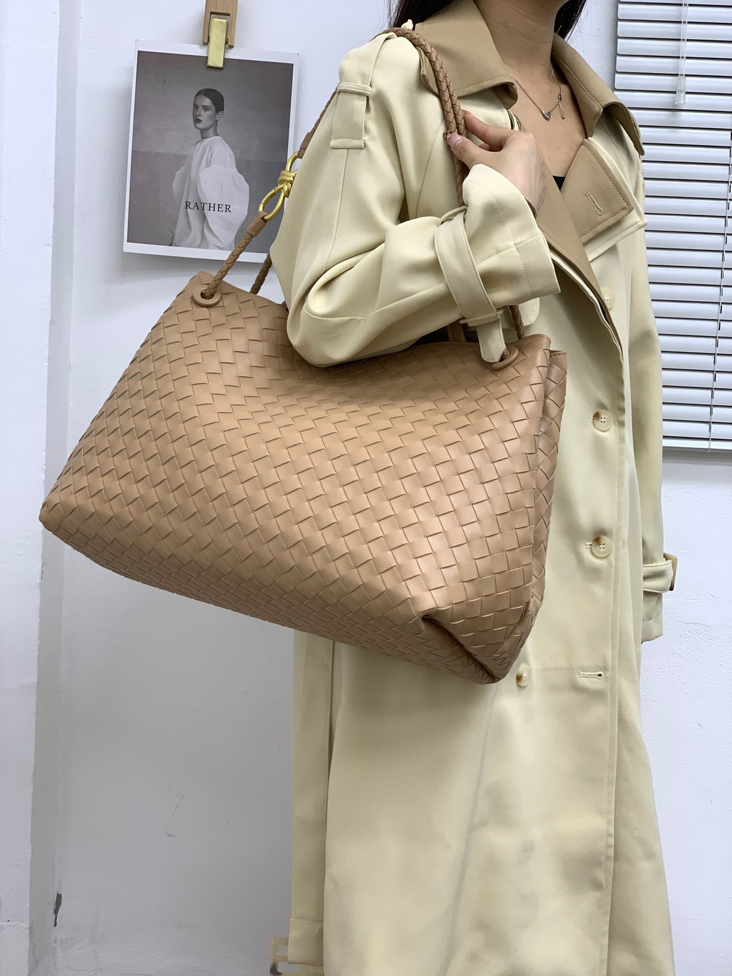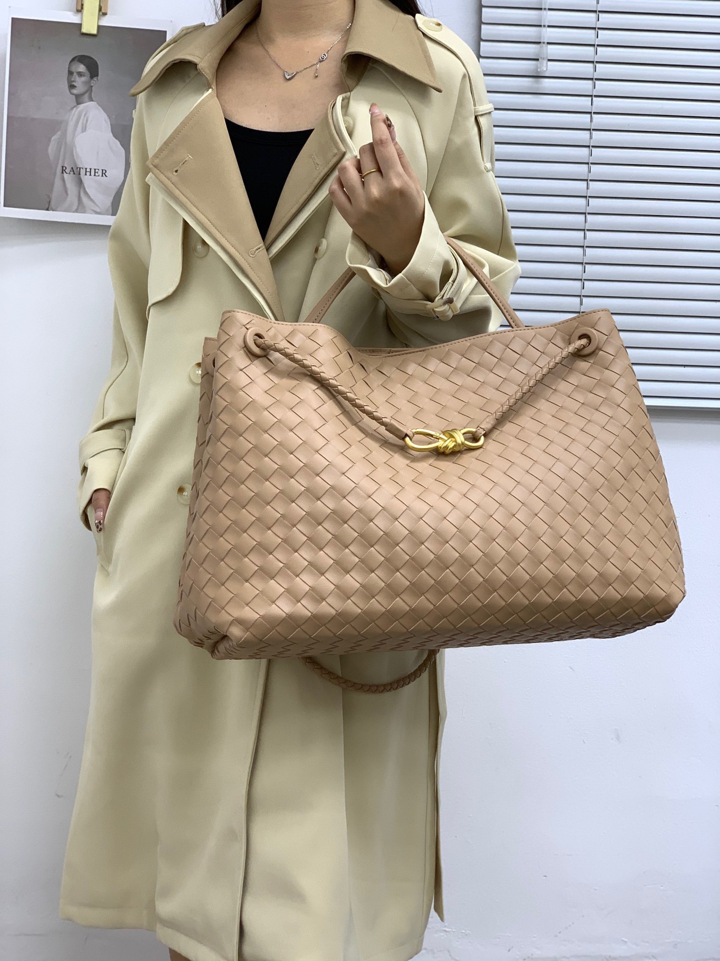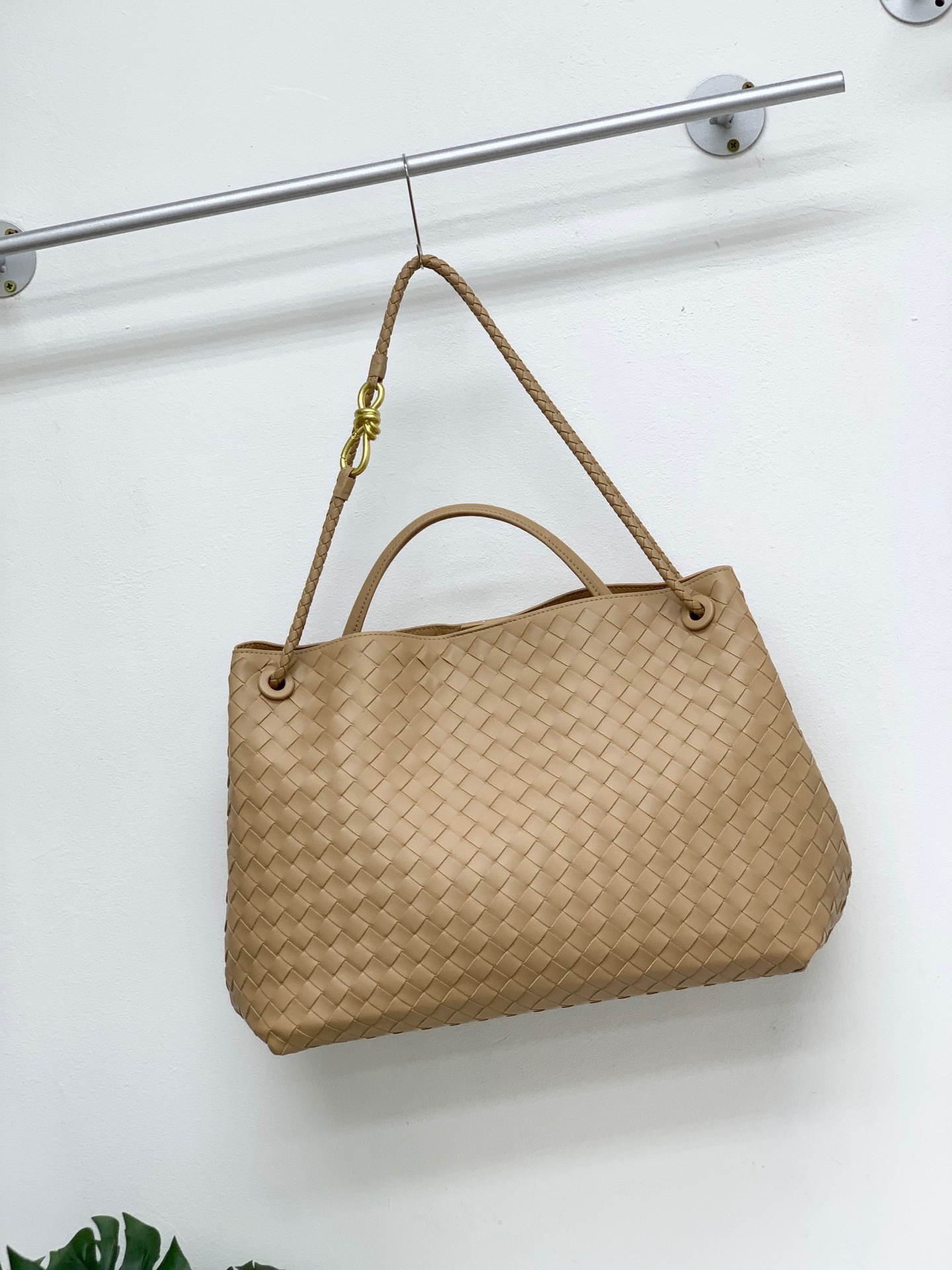 2024蝴蝶結金屬編繩釦編織包包女托特包真皮大容量單肩手提包