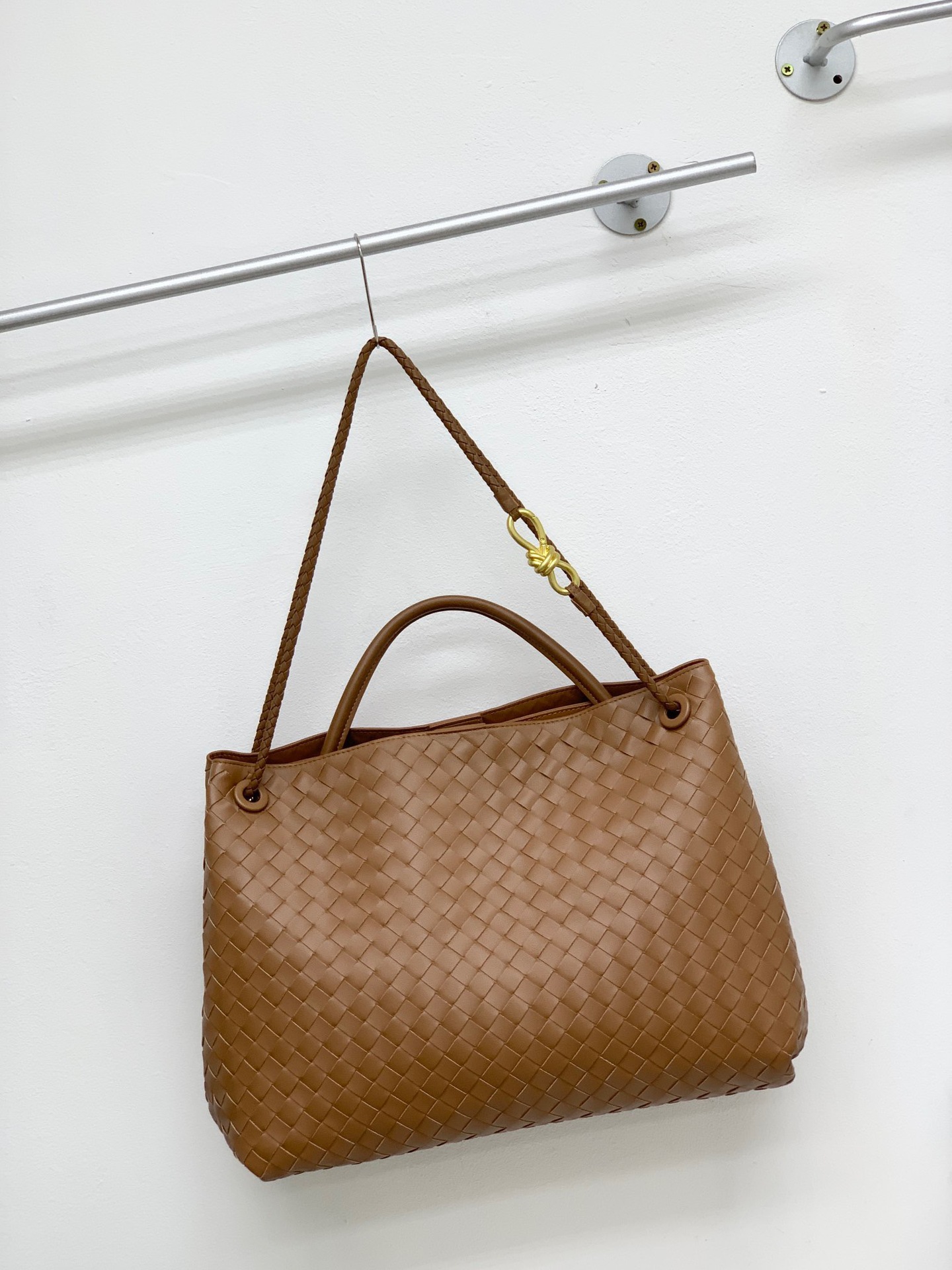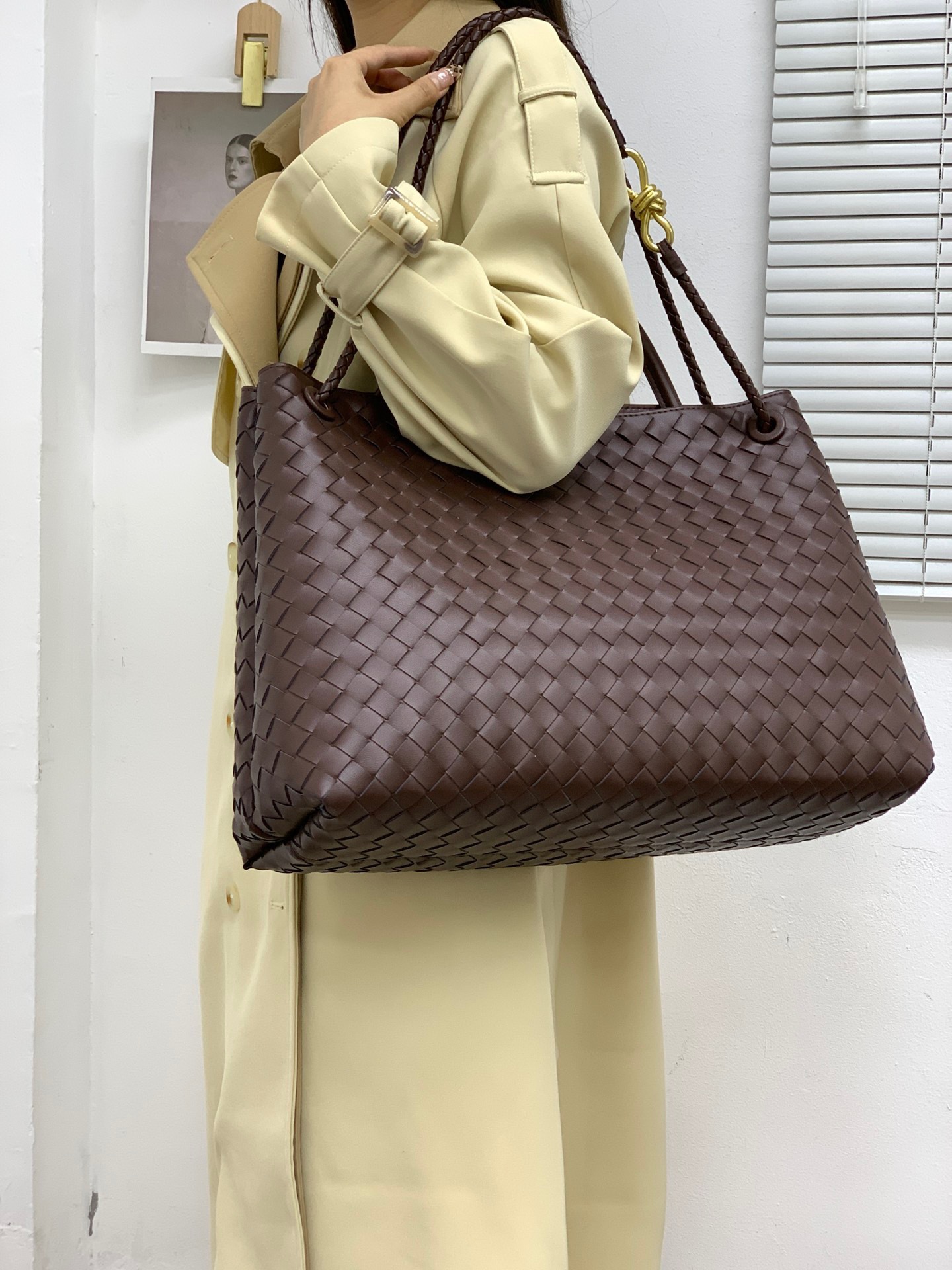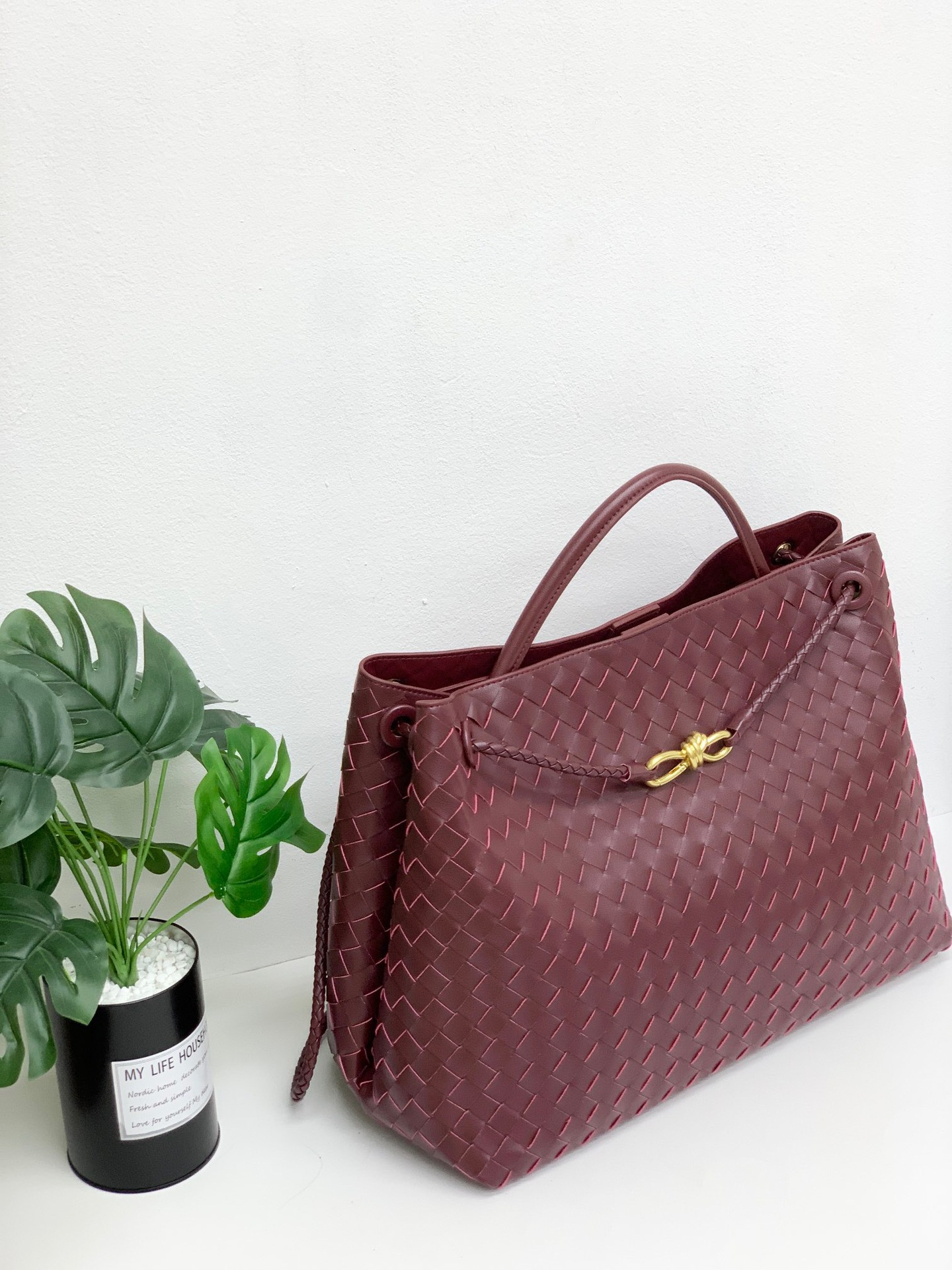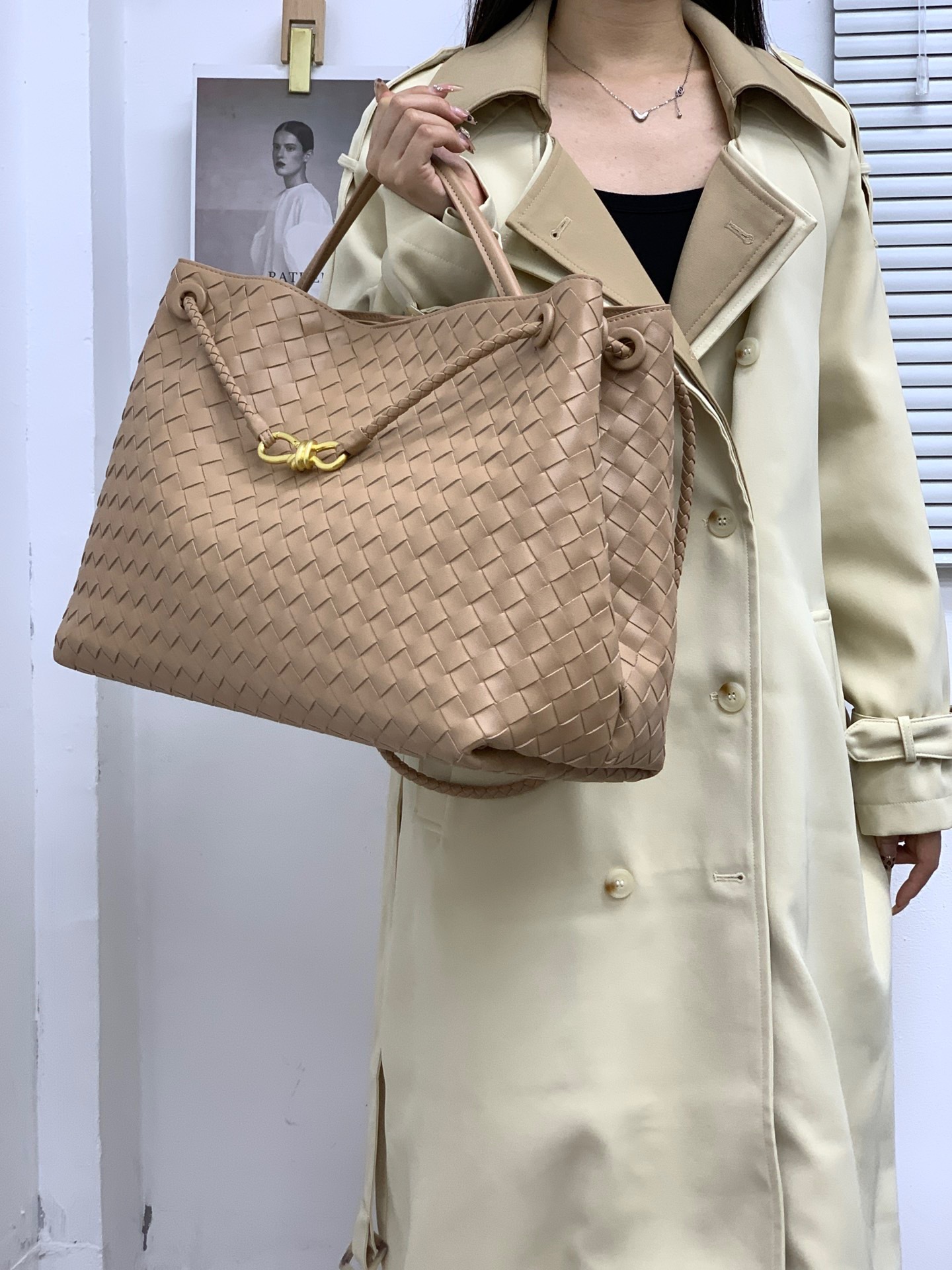 2024蝴蝶結金屬編繩釦編織包包女托特包真皮大容量單肩手提包