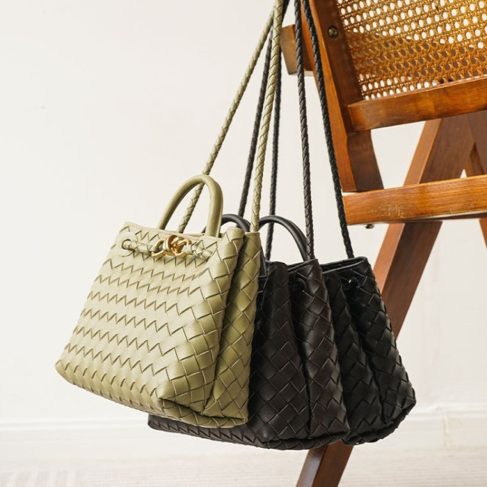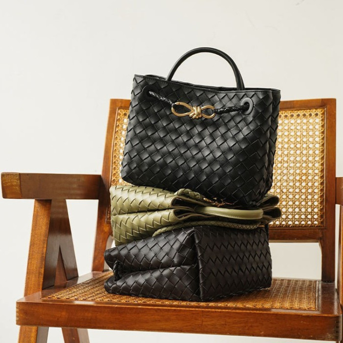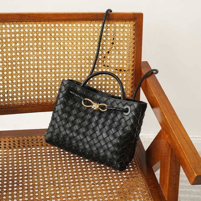 2024bv蝴蝶結編織包新款金屬繩結真皮編織單肩大容量復古斜背手提