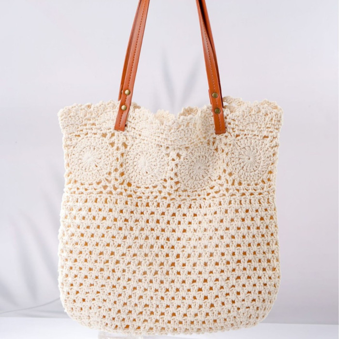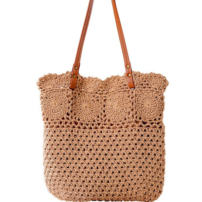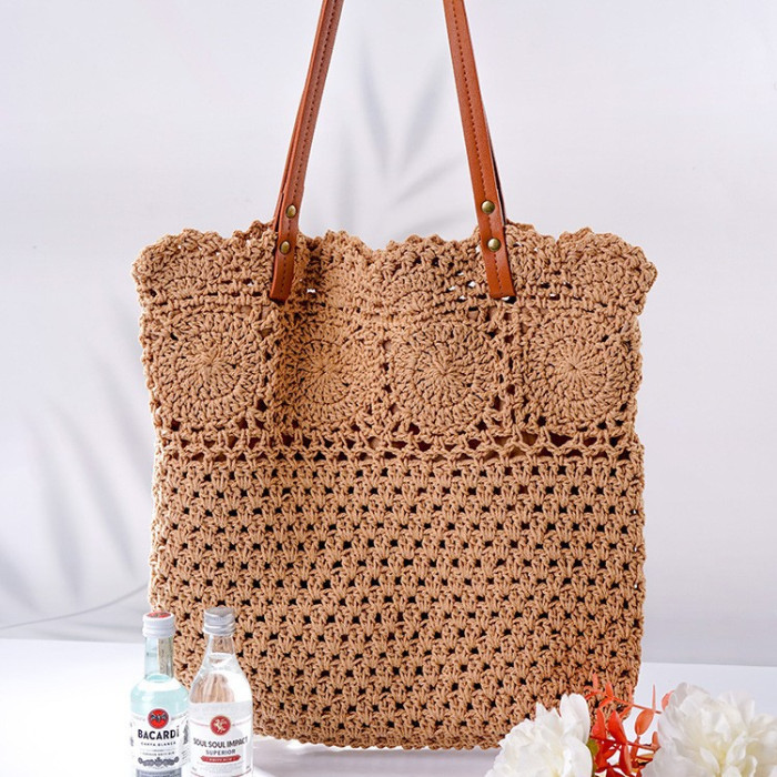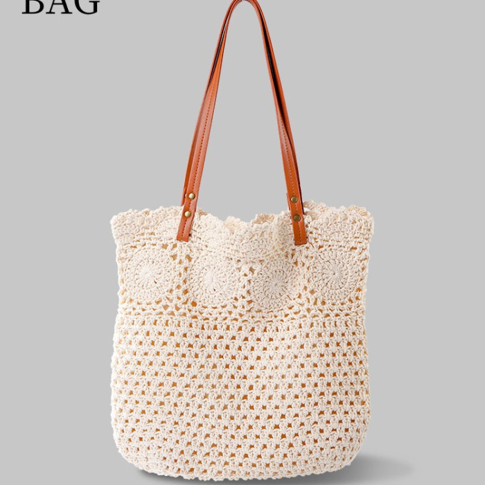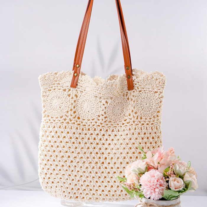 全棉繩編織文藝包包韓系包托特包女包復古勾畫編織包