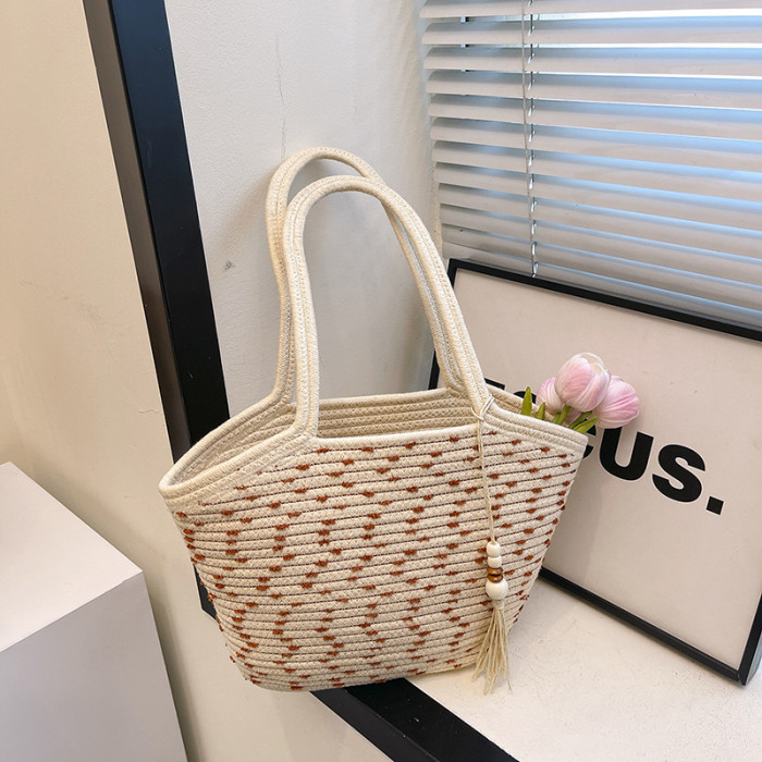 新款棉繩編織包新中式古風手工編織花穗手提包可攜式大容量托特女包