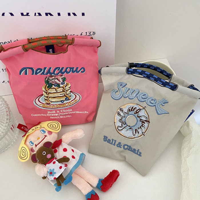 日系自製ball chain環保購物袋尼龍布刺綉花手提帆布包尼龍購物袋
