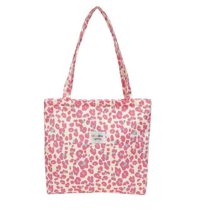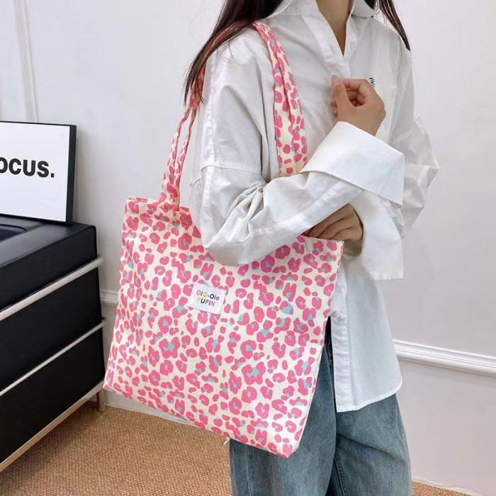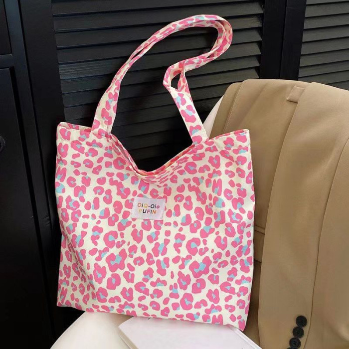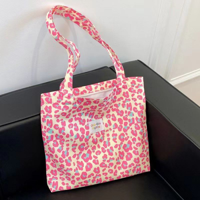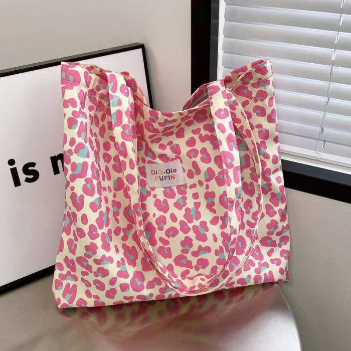 田園風碎花粉色單肩包 百搭ins豹紋帆布包大容量女生外出購物袋