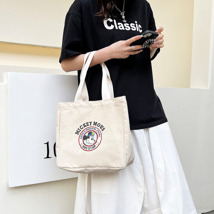 新款卡通簡約大容量帆布包小衆法式高顔值上班通勤手提小拎包包女