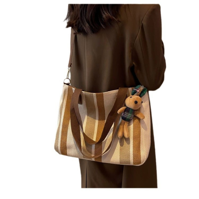 包包女大容量斜背帆布包2023新款潮時尚百搭單肩包上課通勤托特包