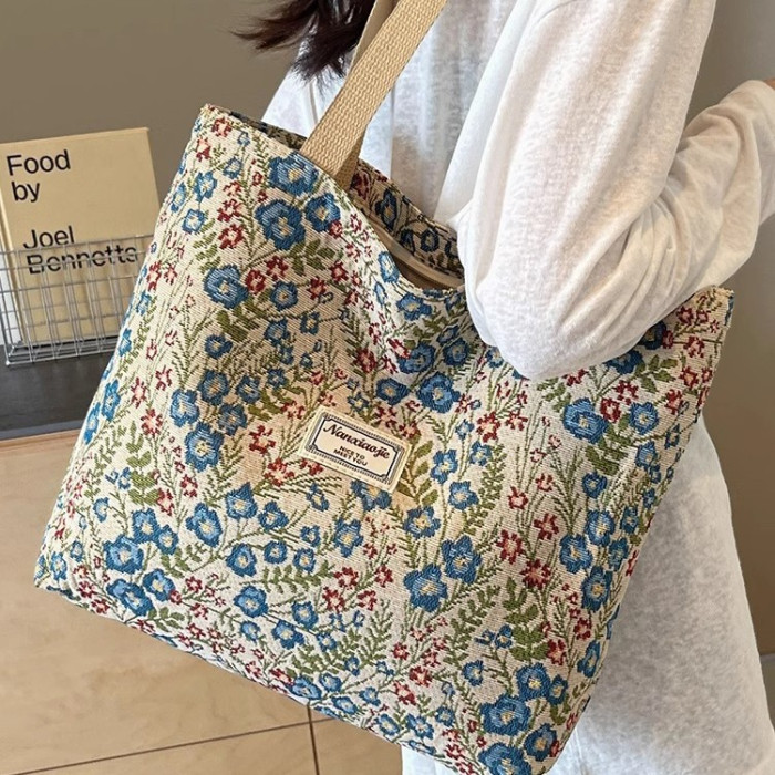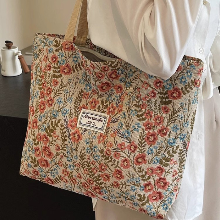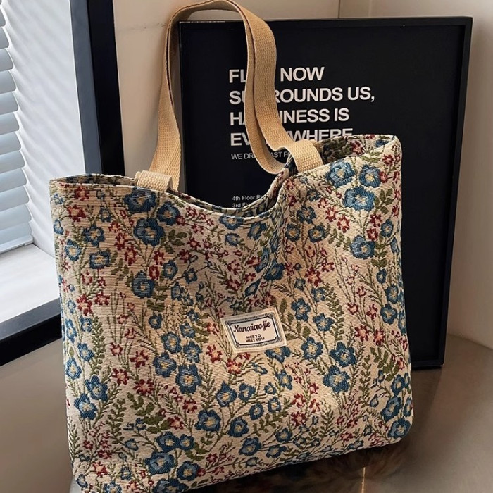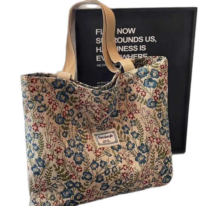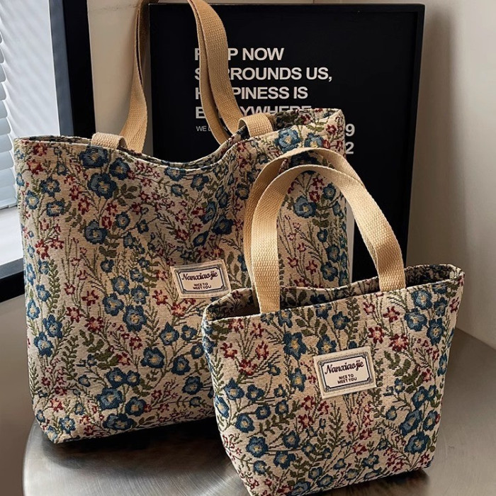 大容量碎花手提包包2025新款單肩托特包創意帆布包可愛ins便當包