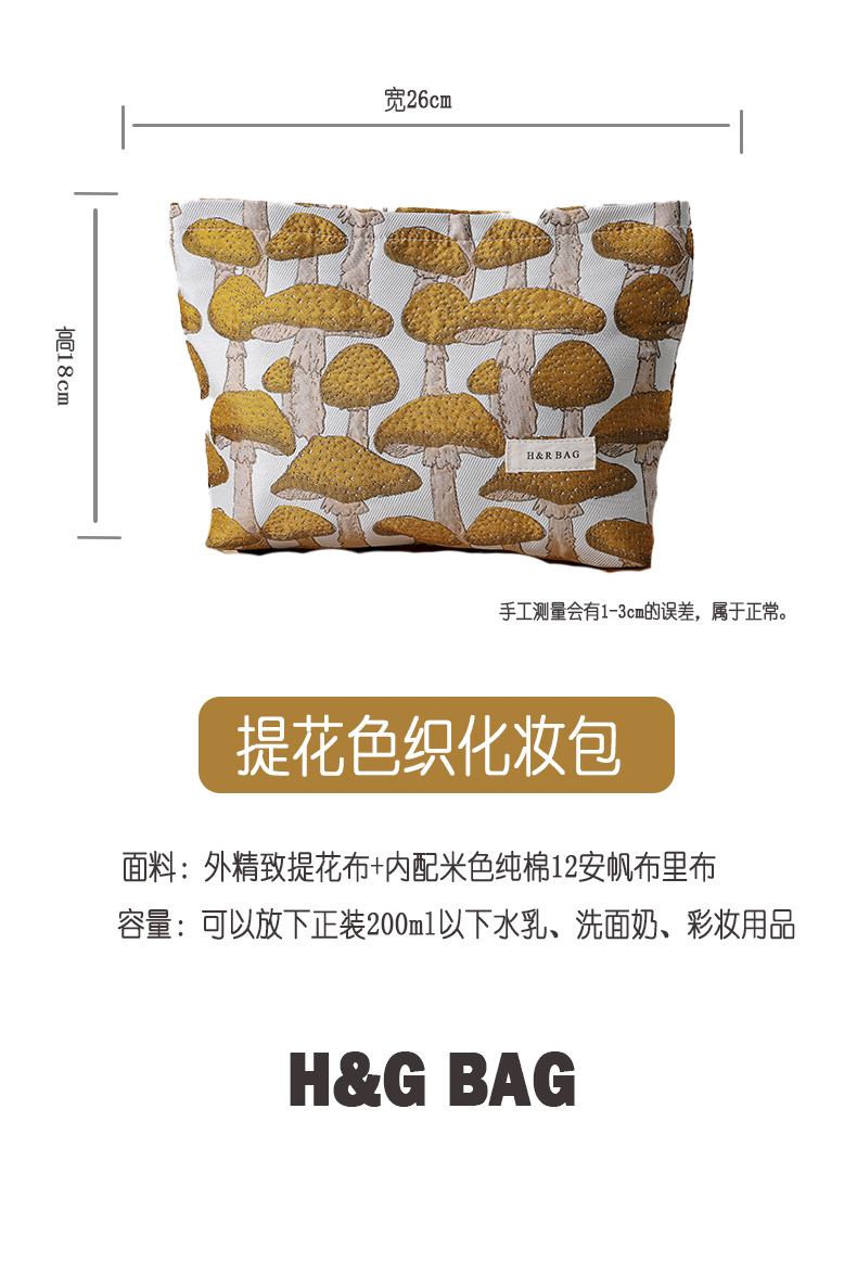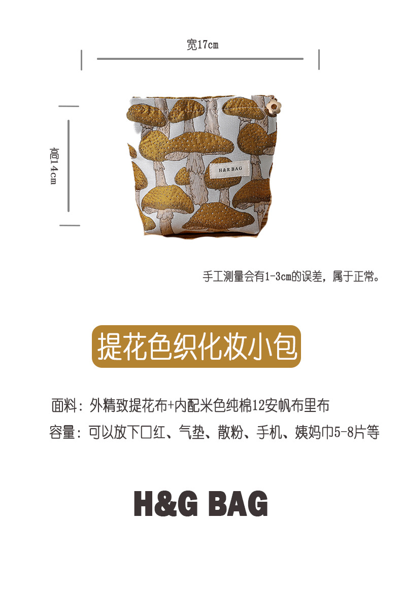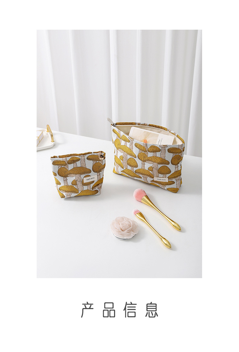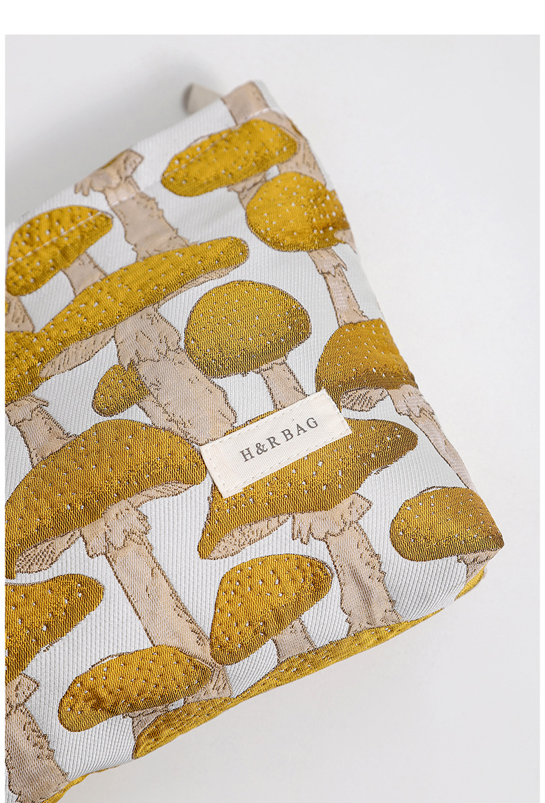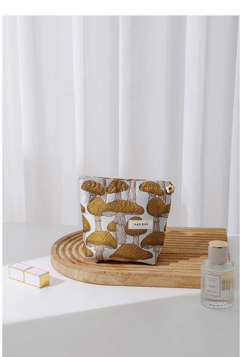 文藝復古提花蘑菇化妝包可攜式洗漱包內膽包旅行護膚品收納袋帆布包