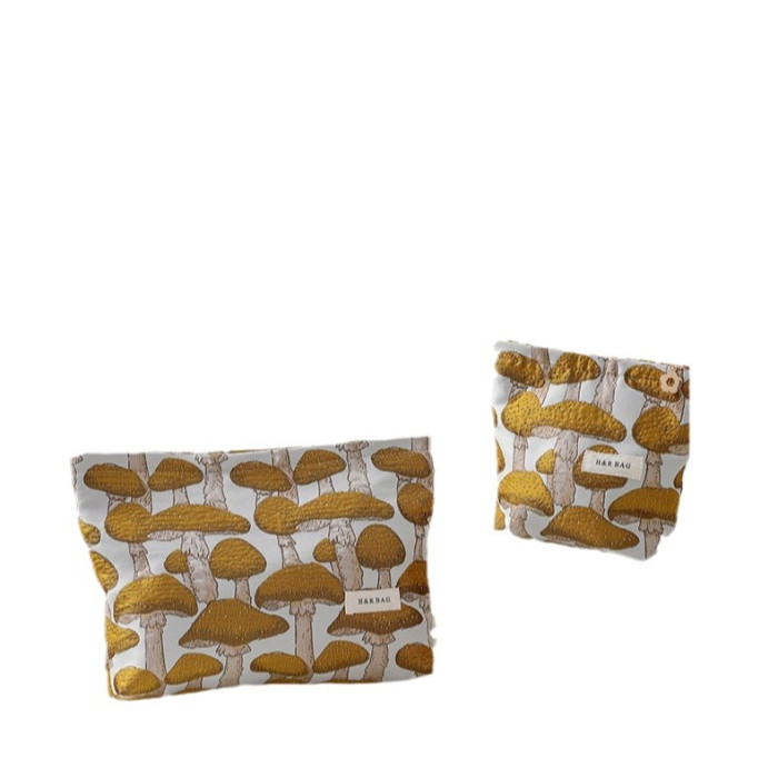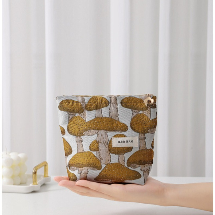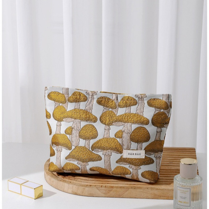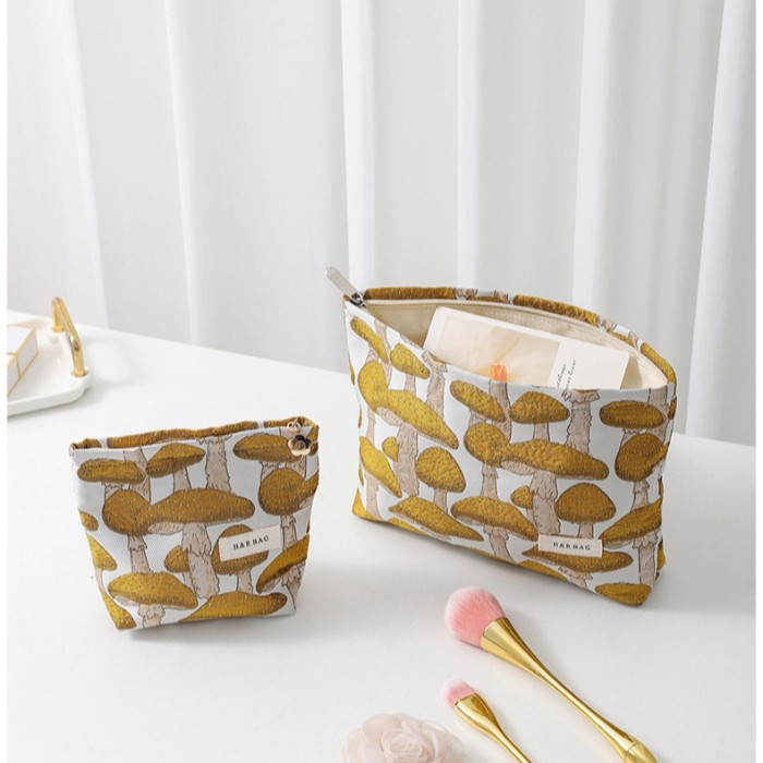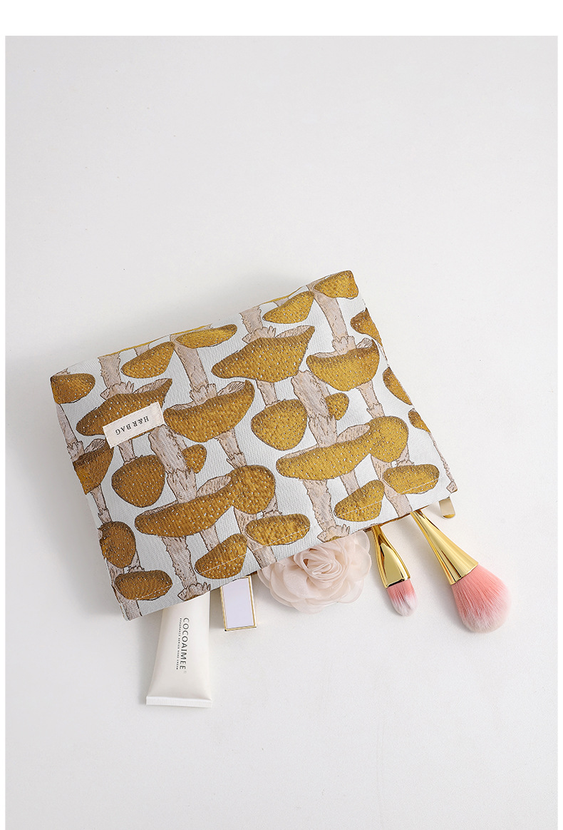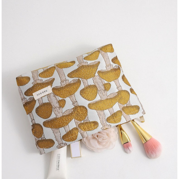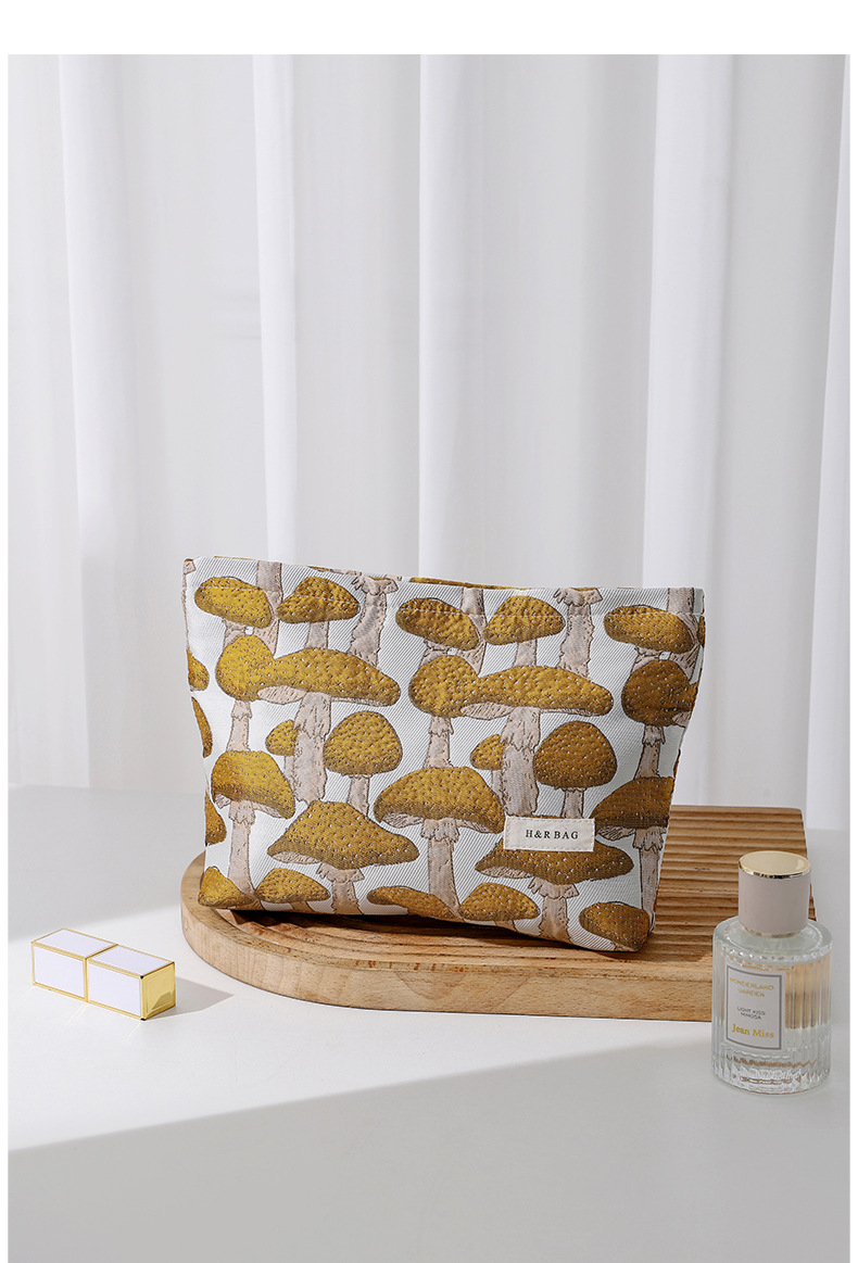 文藝復古提花蘑菇化妝包可攜式洗漱包內膽包旅行護膚品收納袋帆布包