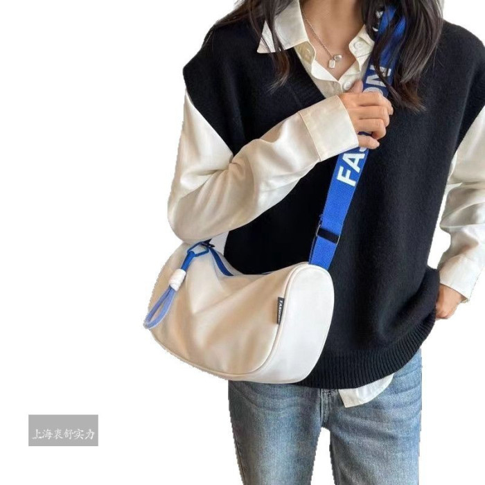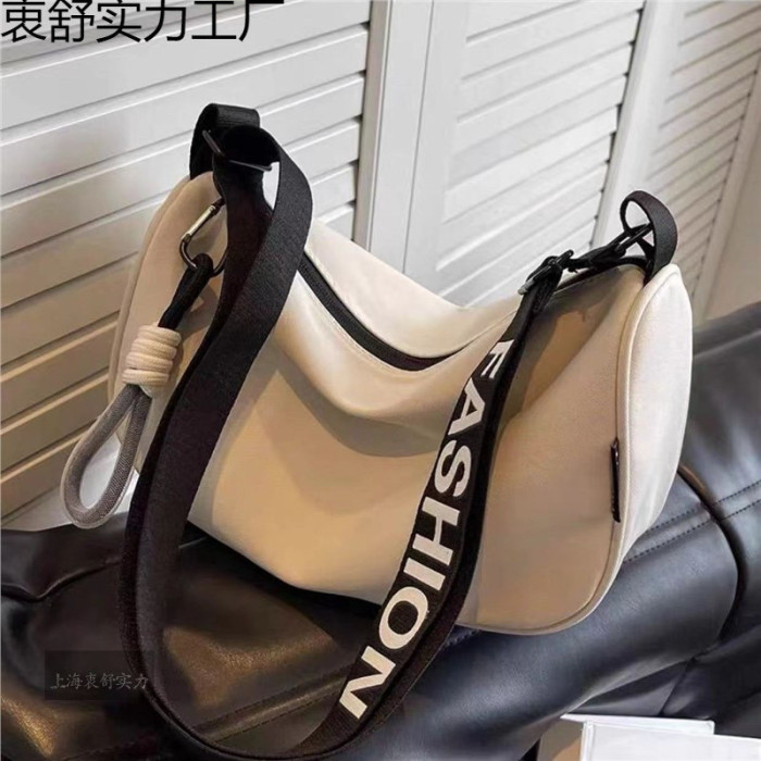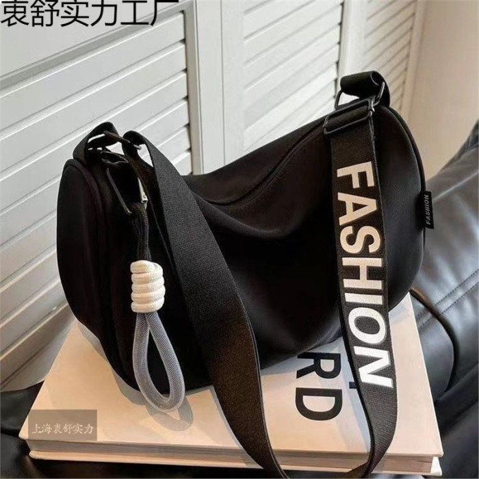 大容量尼龍帆布包包女時尚2025新款休閒單肩包百搭寬帶斜背枕頭包