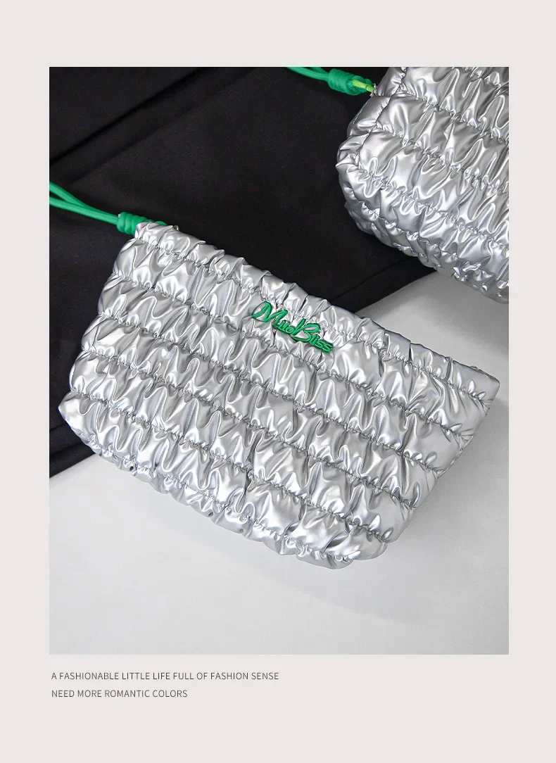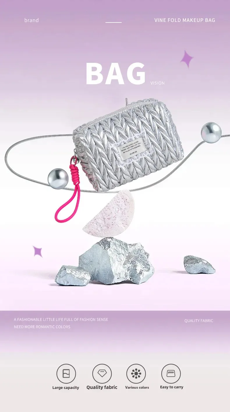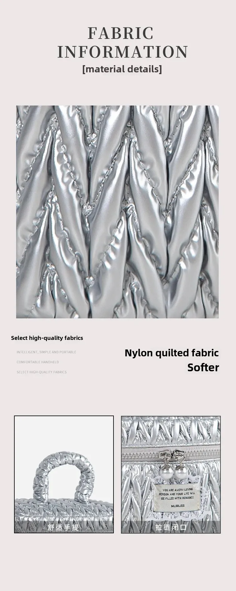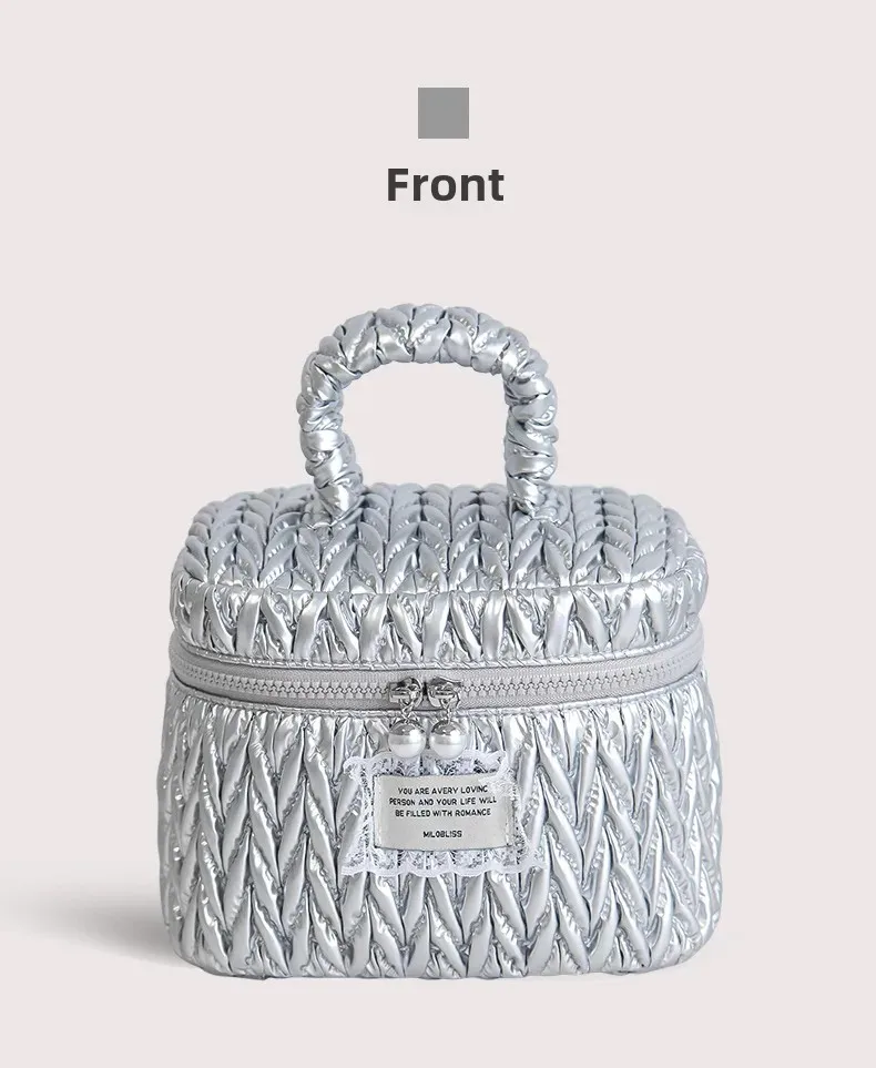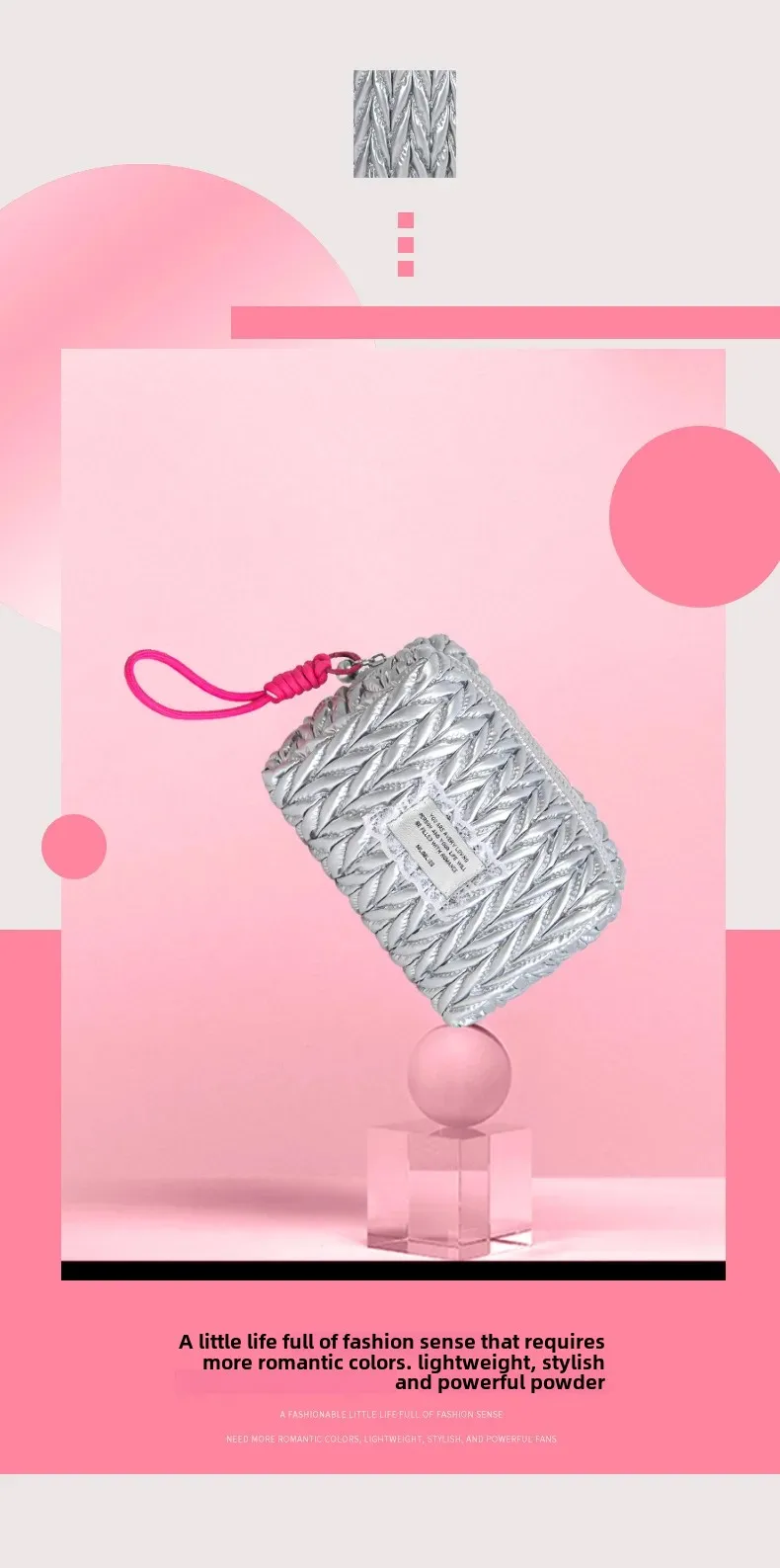 新款個性ins風大容量銀色化妝包大容量手提收納包高級感羽絨質感