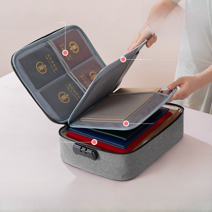 証件收納包旅行家用多層大容量檔案文件袋可攜式帶鎖收納袋