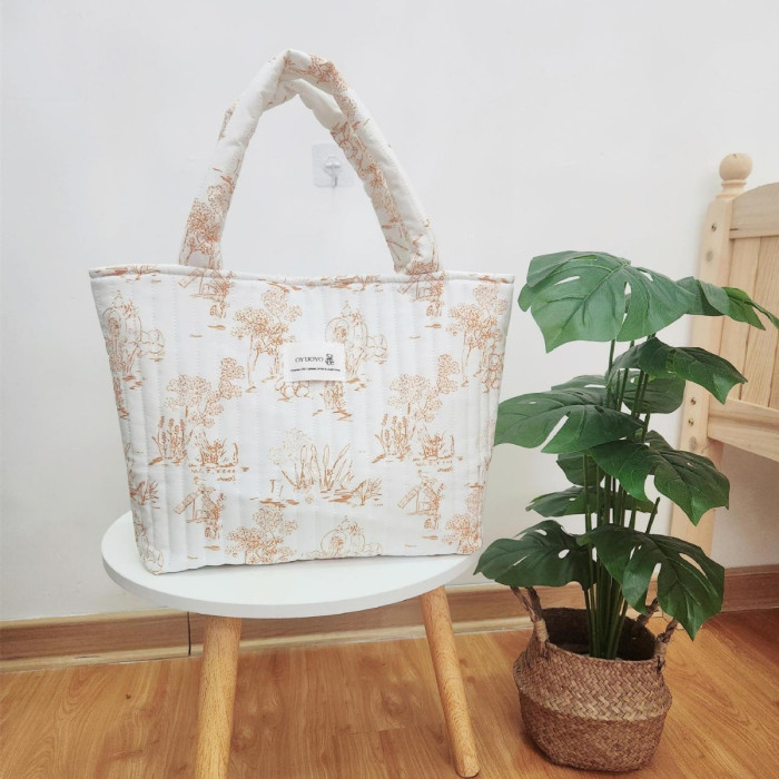 ins大容量碎花媽咪包手提旅行包母嬰包待産包多功能斜背收納包