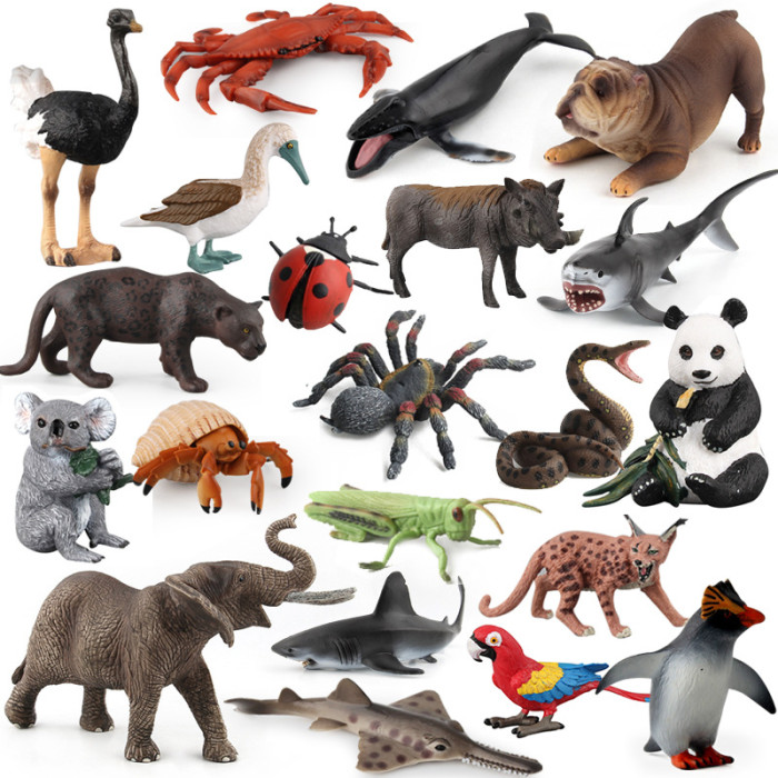 40款仿真實心海洋生物大白鯊鯨魚企鵞野生動物模型長頸鹿崑蟲套裝