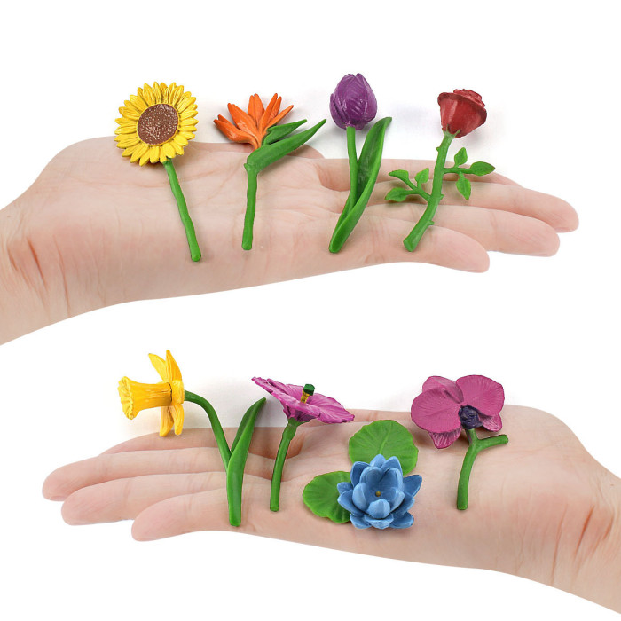 兒童動物模型場景擺件 植物鮮花套裝 仿真向日葵水仙玫瑰花卉裝飾