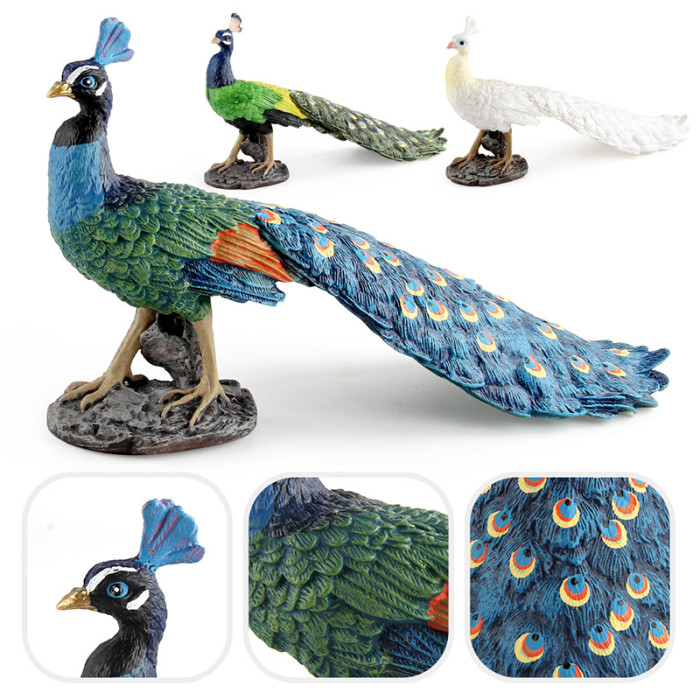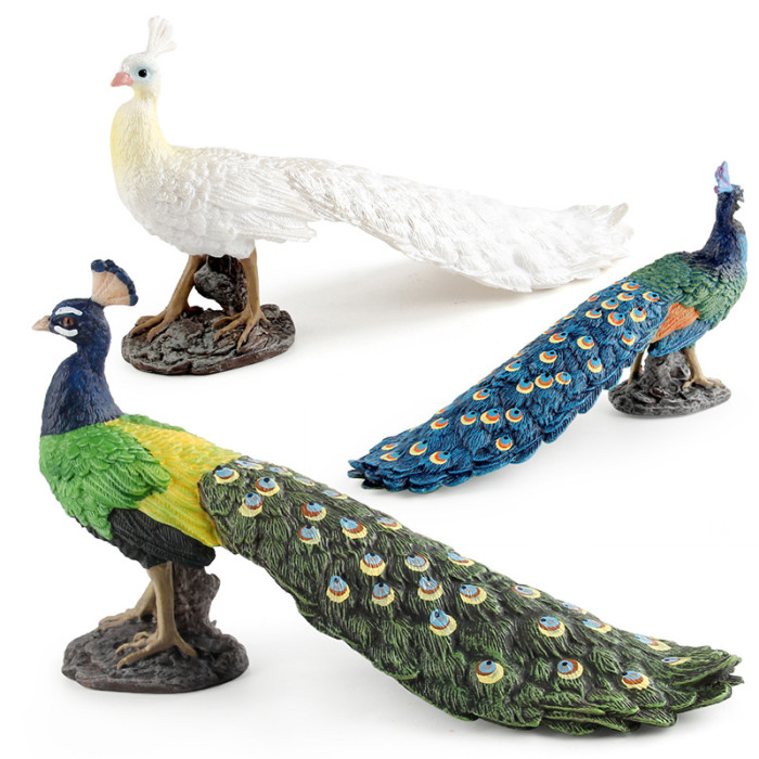 新品仿真動物孔雀模型藍綠白色孔雀靜態裝飾桌面擺件玩具