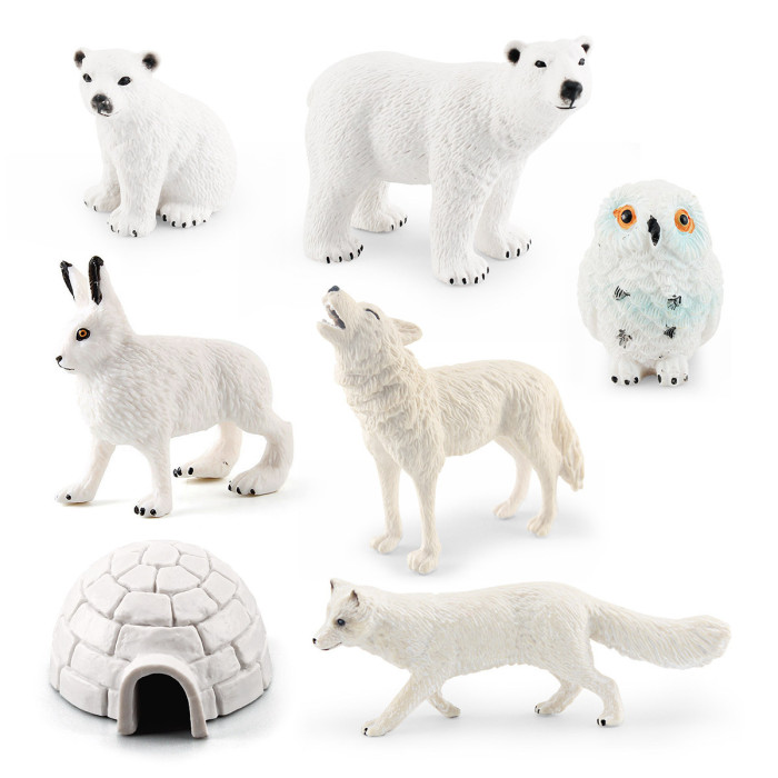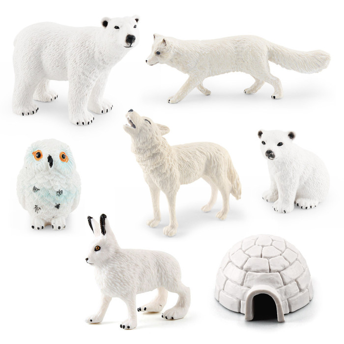家仿真極地動物貓頭鷹白狐北極熊白狼冰屋模型桌面靜態擺件