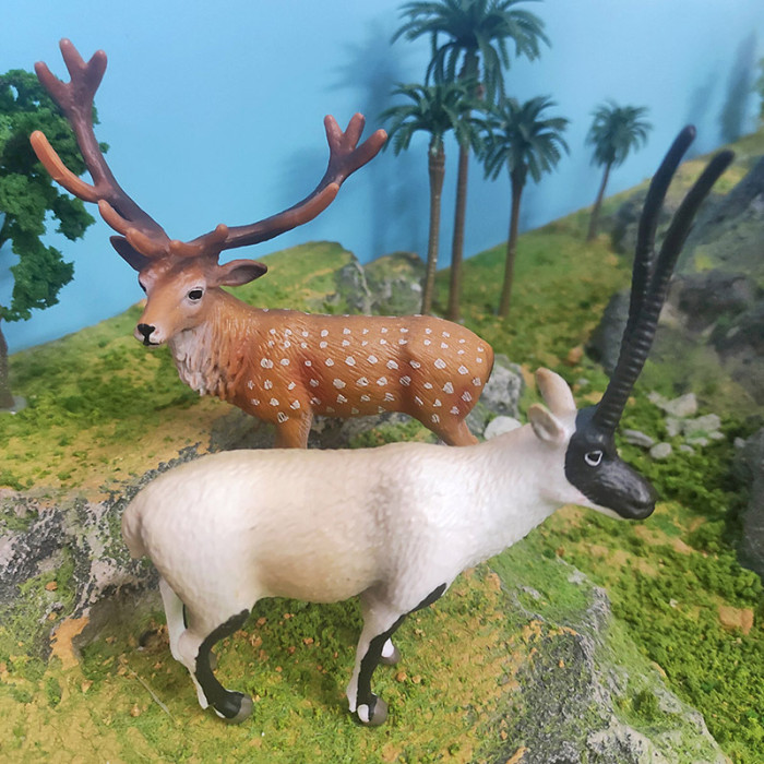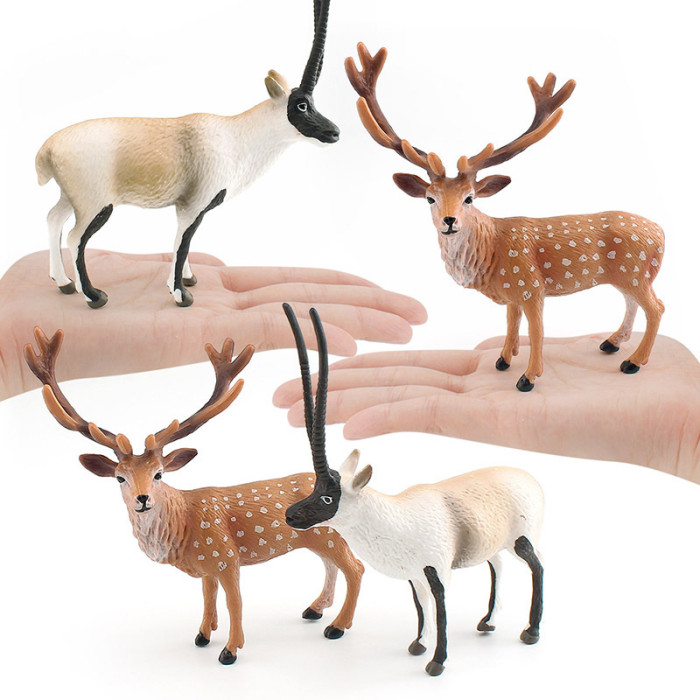 仿真森林動物模型兒童科教認知梅花鹿藏羚羊桌面裝飾擺件玩具