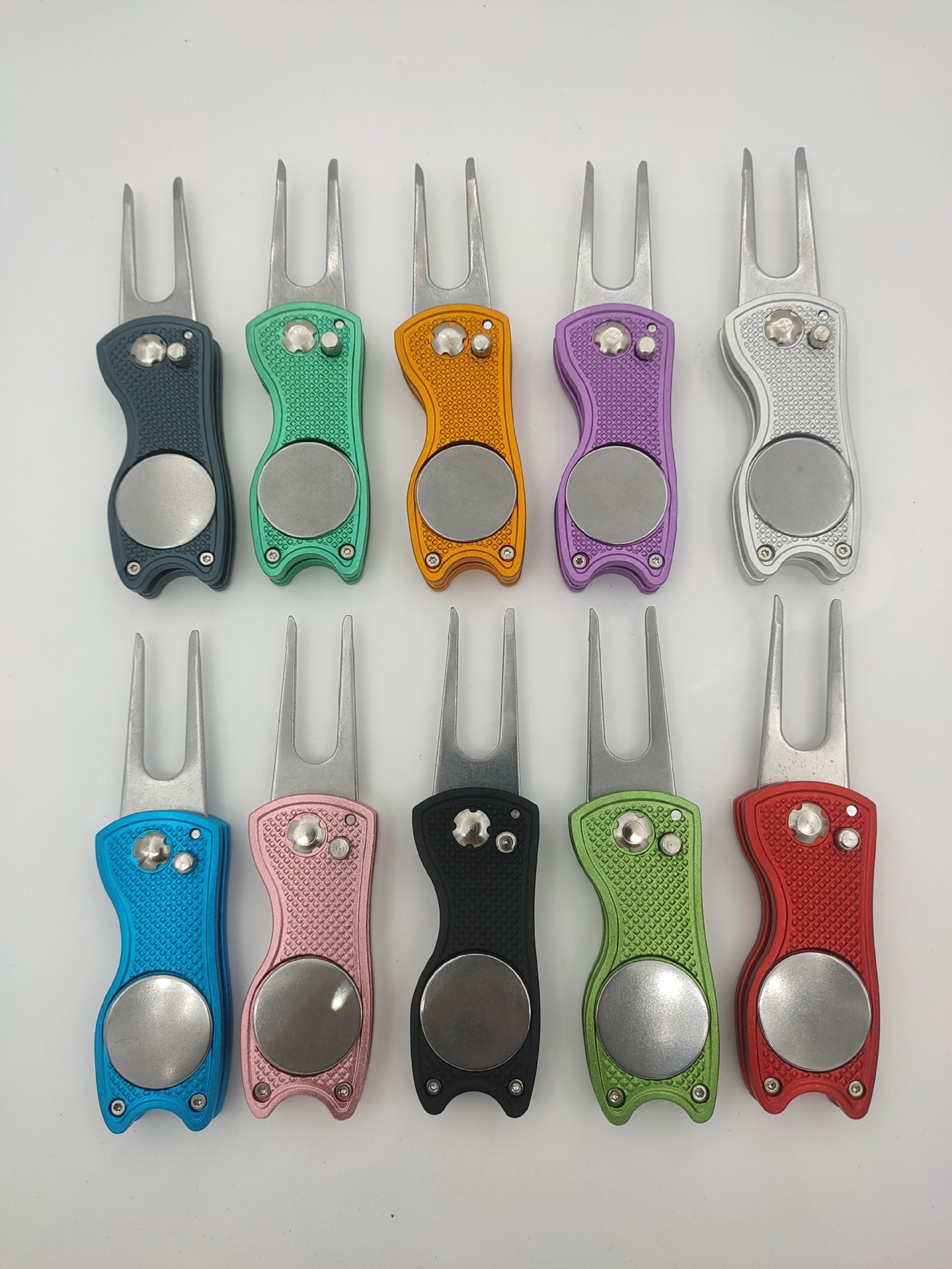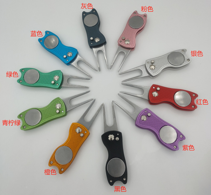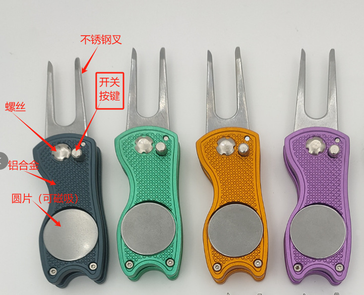 高爾夫果嶺叉 高爾夫球場叉 折曡功具金屬鋁柄草地修復叉