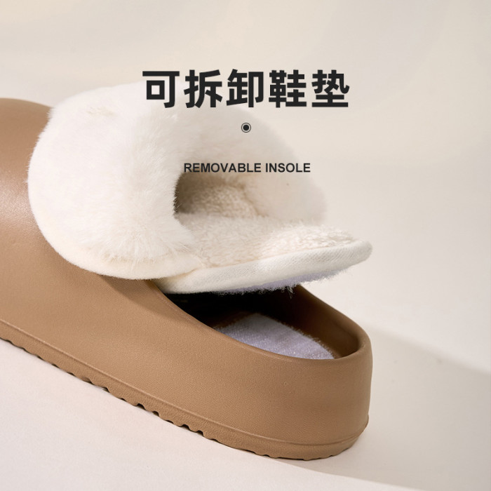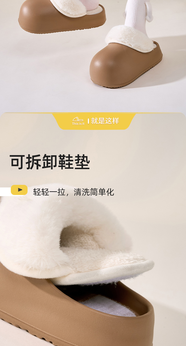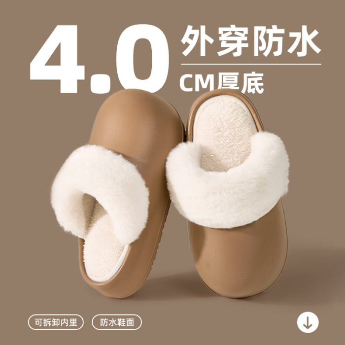 防水拖鞋女新款秋冬季家居防滑室內居家用厚底可拆卸踩屎感棉拖鞋